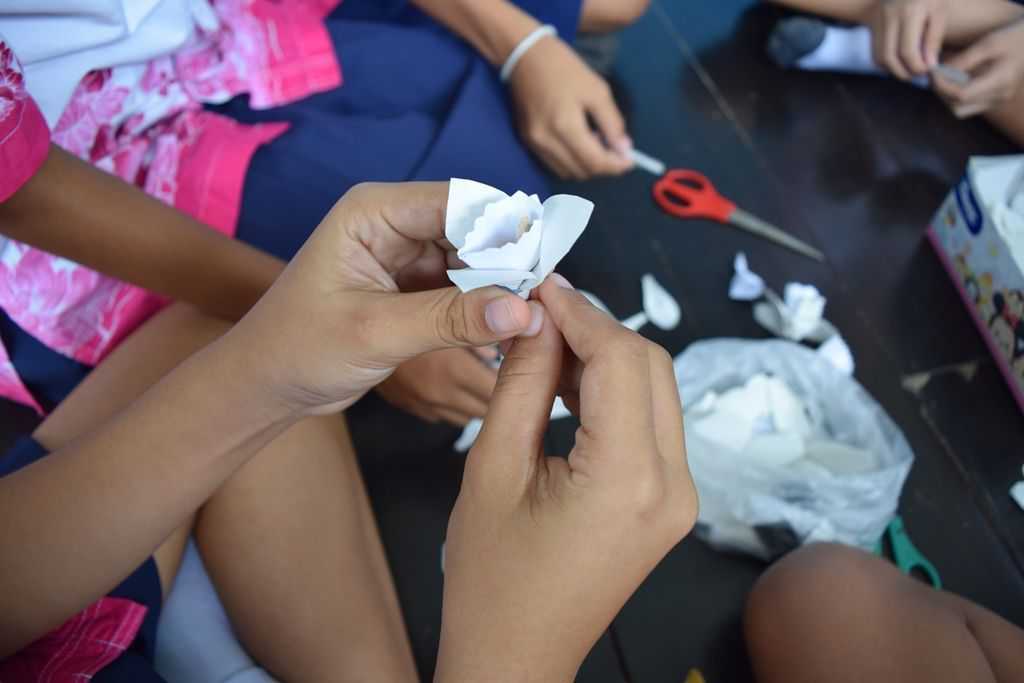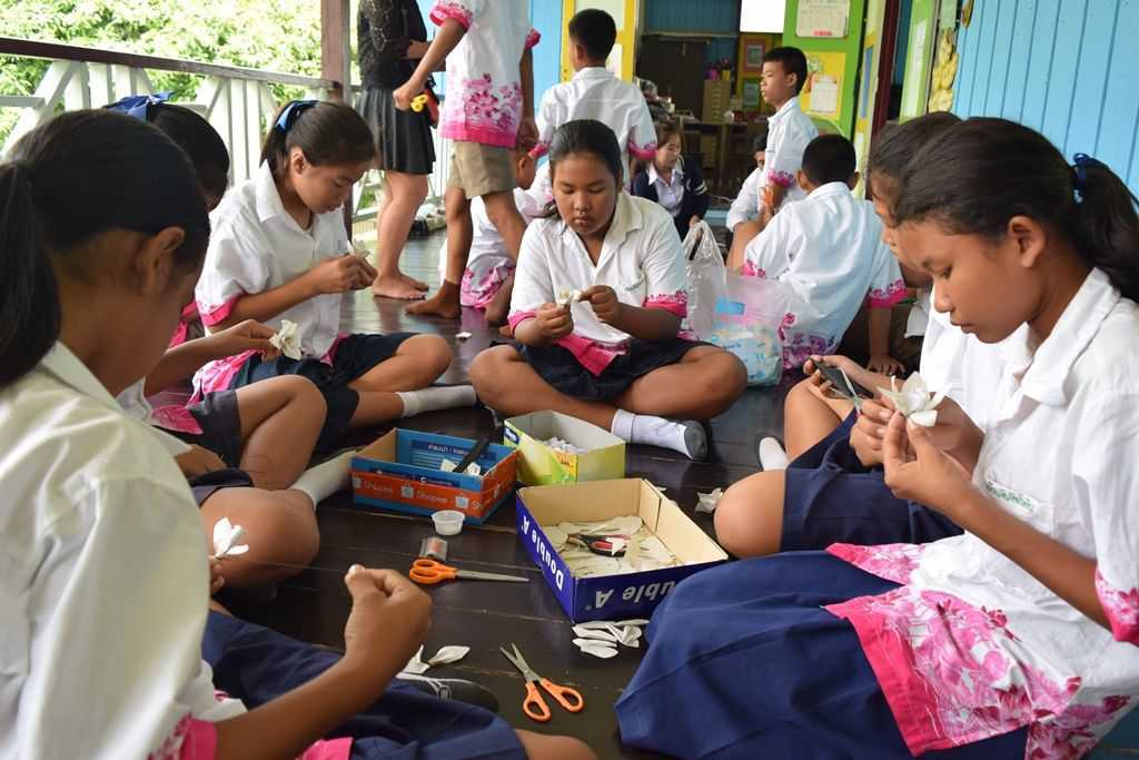 9 มิถุนายน 2560 คุณครู และนักเรียนโรงเรียนวัดวังน้ำเขียวร่วมน้อมใจประดิษฐ์ดอกไม้จันทน์