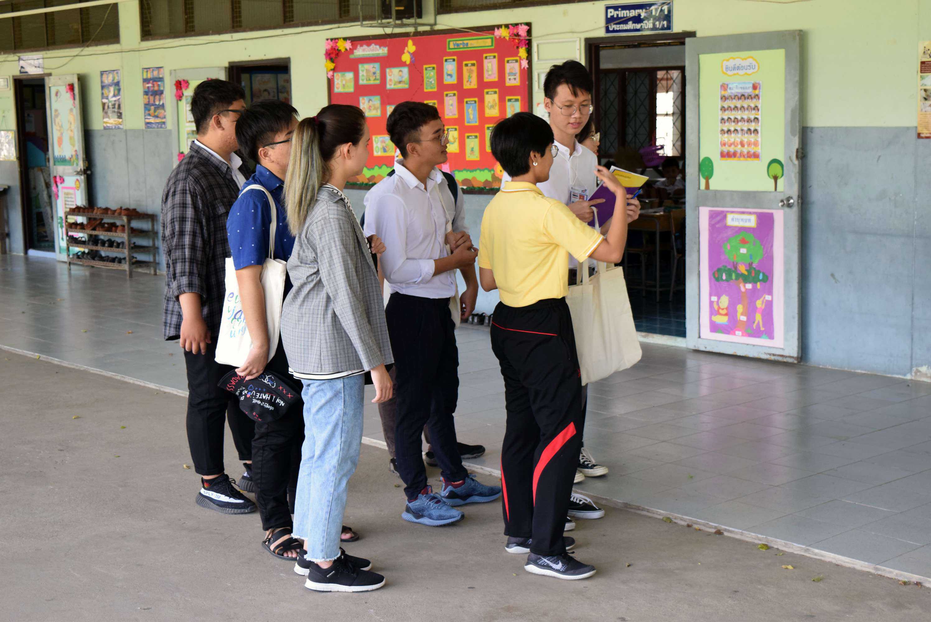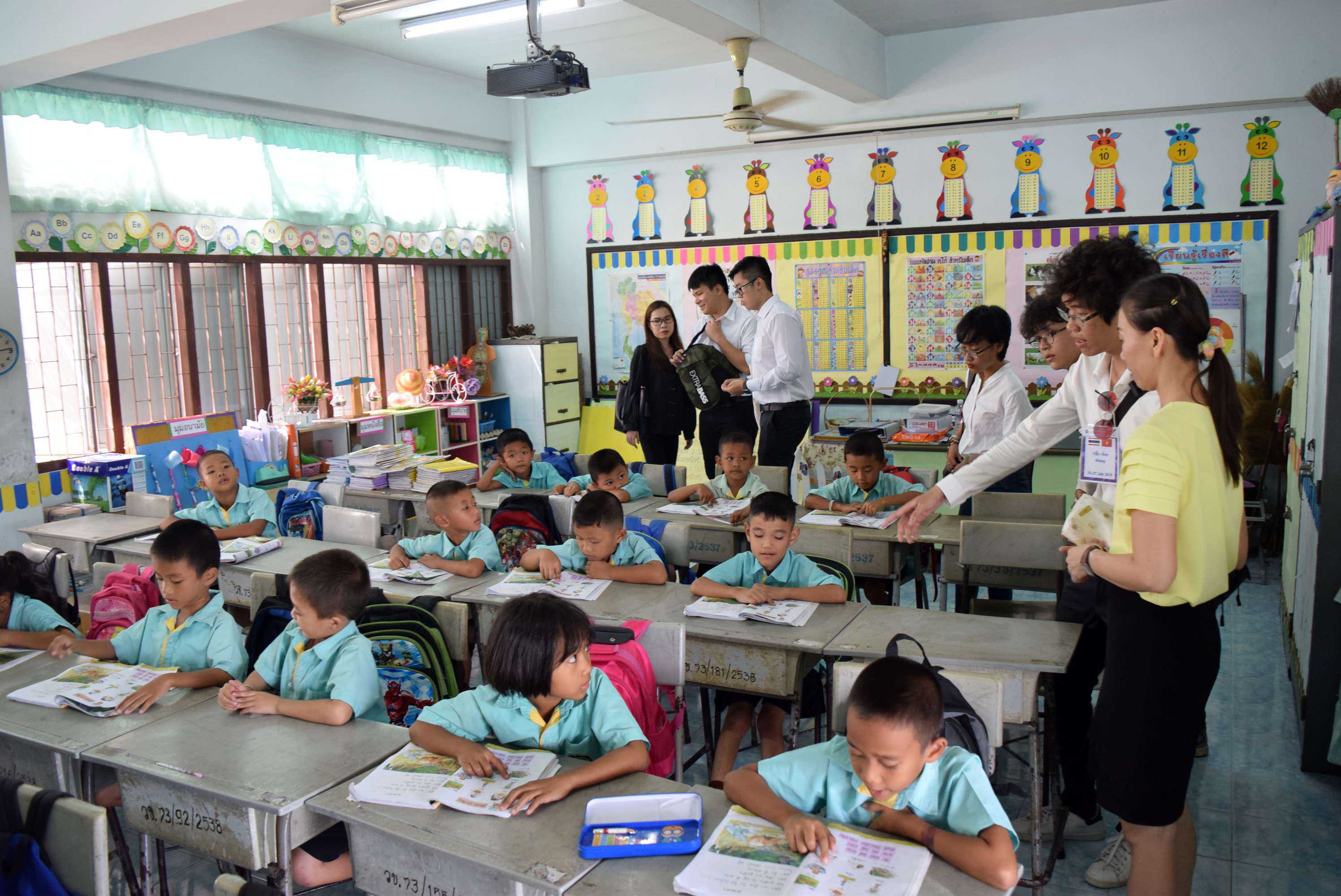 23 กรกฎาคม 2562 นิสิตชาวต่างชาติจากคณะศึกษาศาสตร์ มหาวิทยาลัยเกษตรศาสตร์ วิทยาเขตกำแพงแสน โครงการฝึกประสบการณ์สอนนิสิตชาวต่างชาติ กิจกรรม Class observation/Teaching Assistant ได้เข้ามาสังเกตการณ์การเรียนการสอนคณะครูและนักเรียนโรงเรียนวัดวังน้ำเขียว เพื่อให้นิสิตได้เพิ่มพูนความรู้ ประสบการณ์ และเรียนรู้แนวทางการจัดการการเรียนการสอนในประเทศ S:1