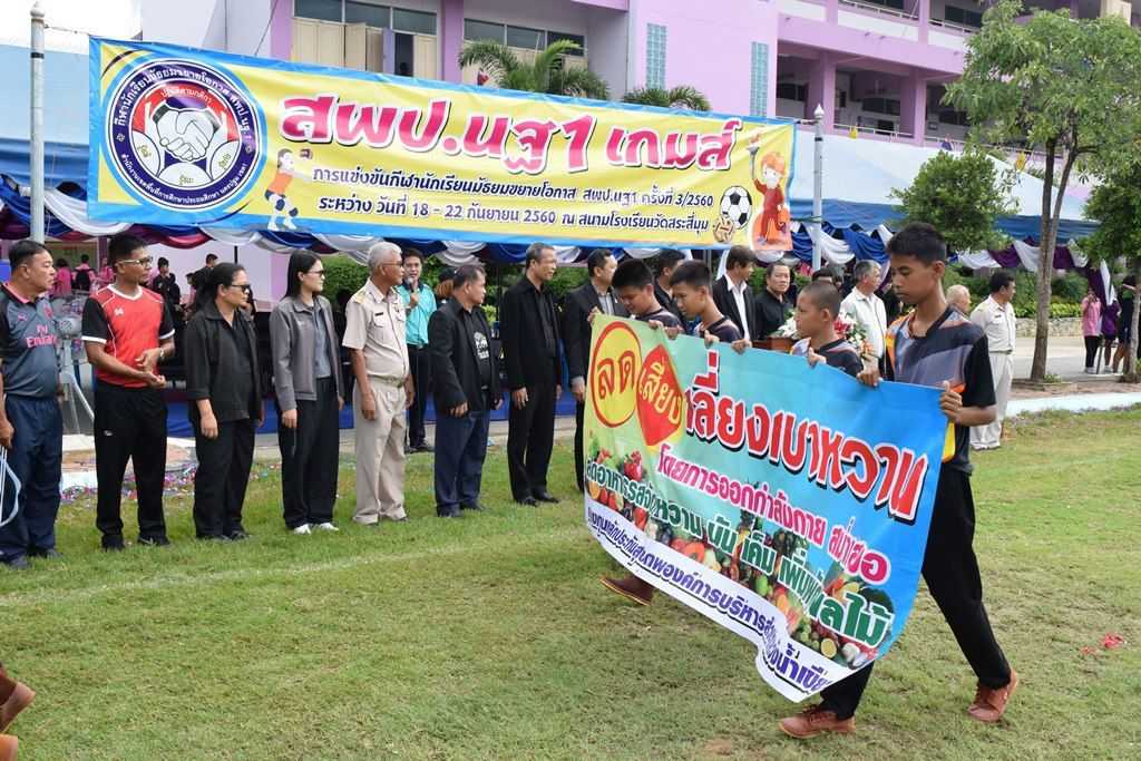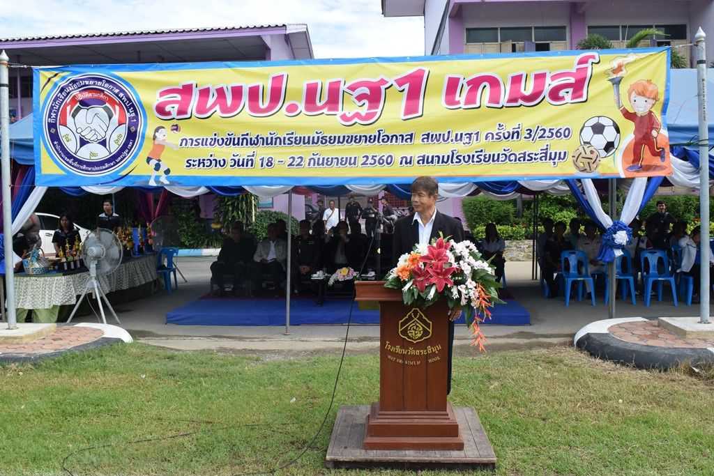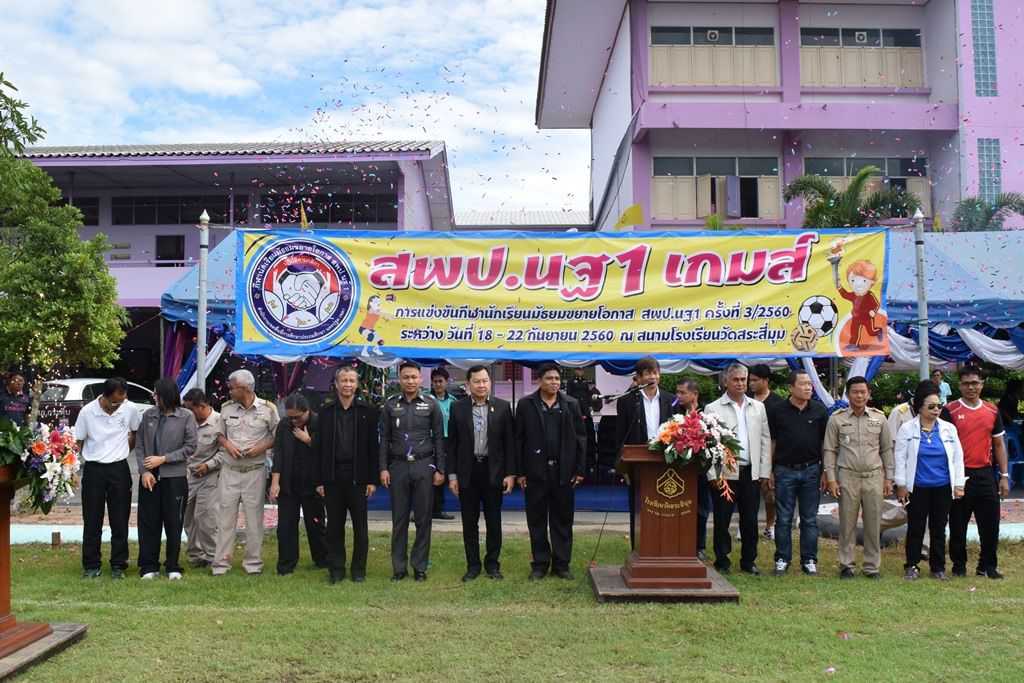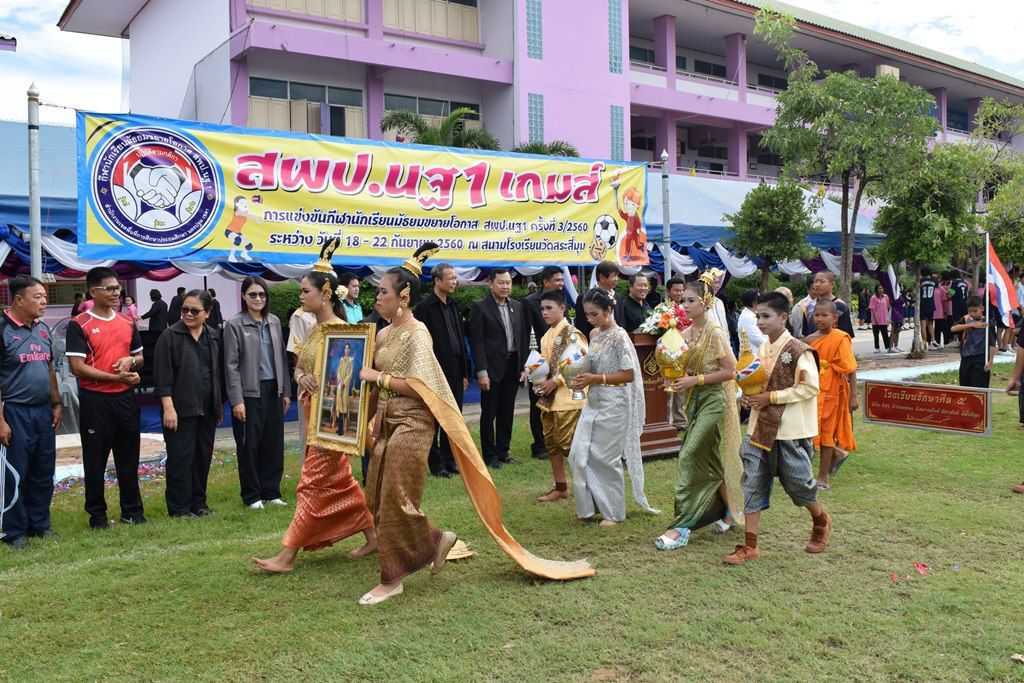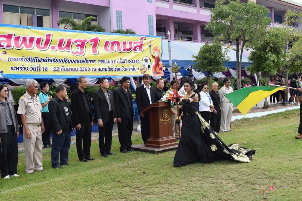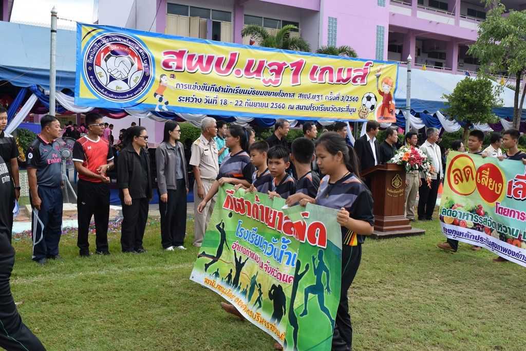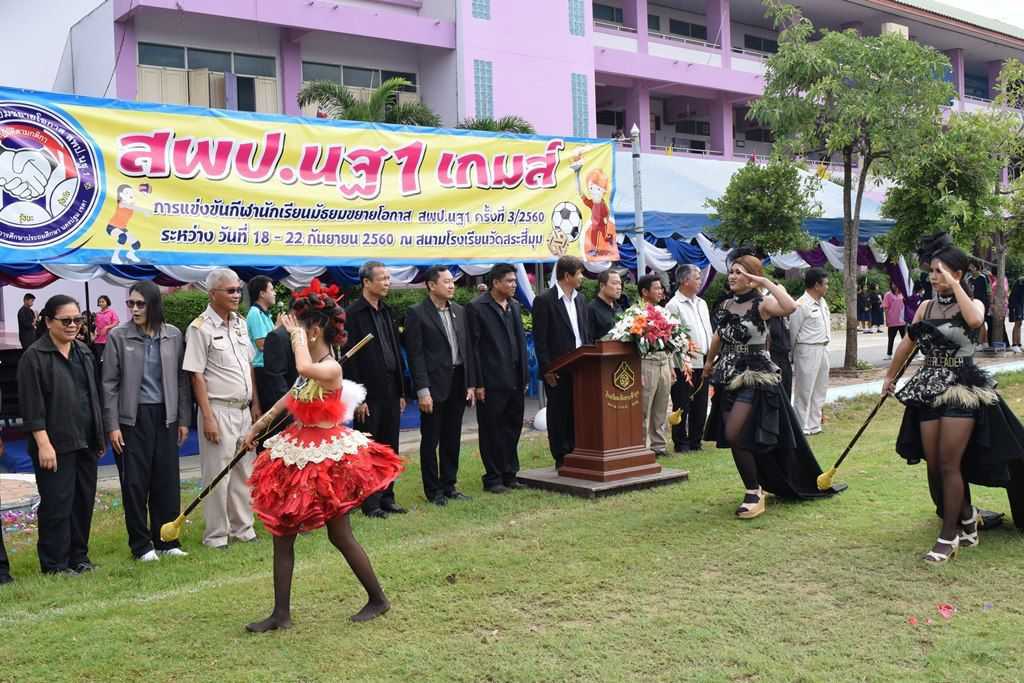 18 กันยายน 2560 พิธีเปิดกีฬาโรงเรียนขยาย สพป.นฐ.1 เกมส์ ณ สนามโรงเรียนวัดสระสี่มุม