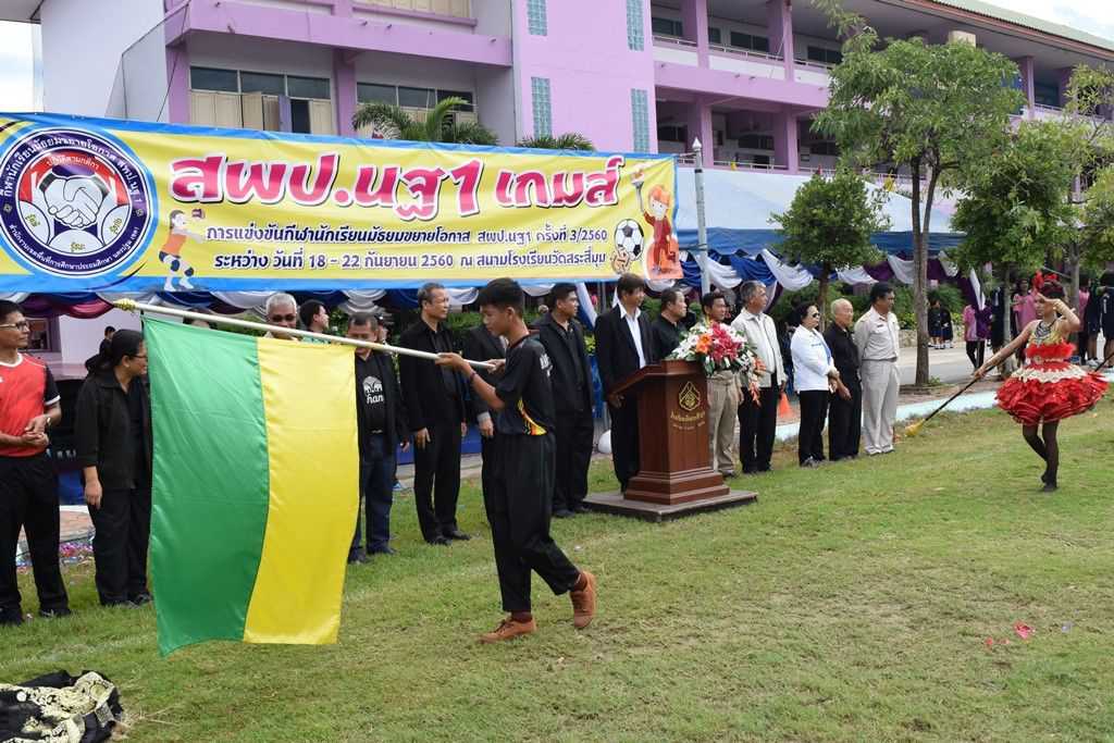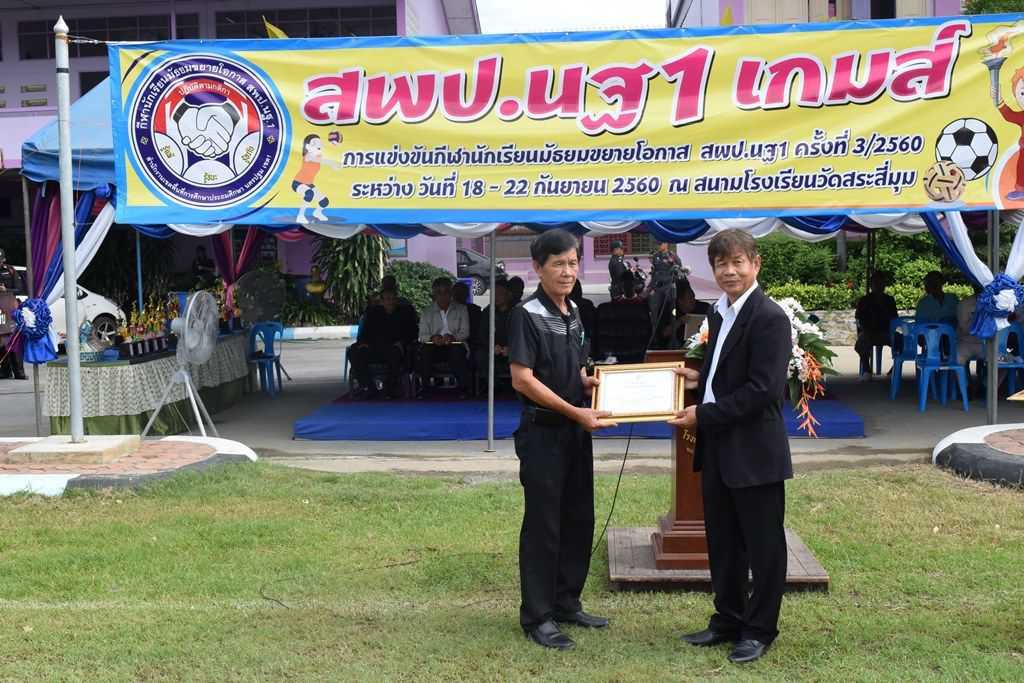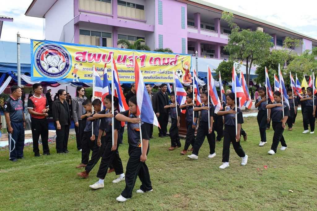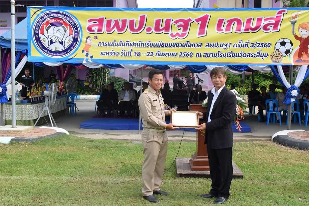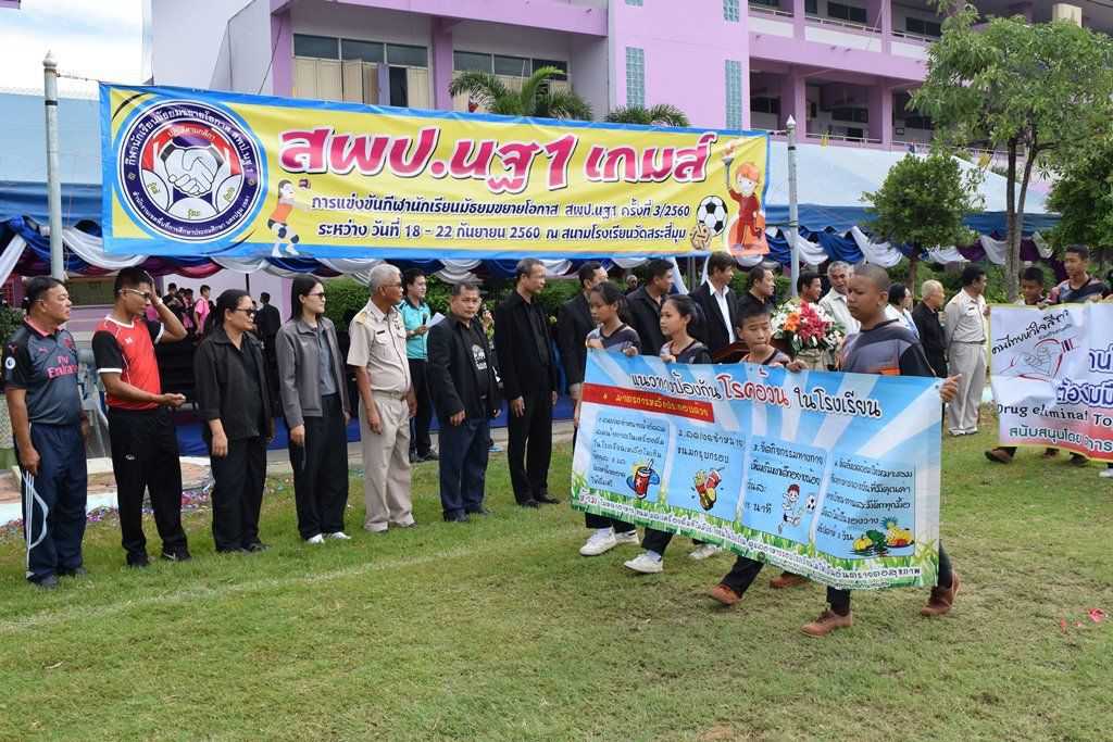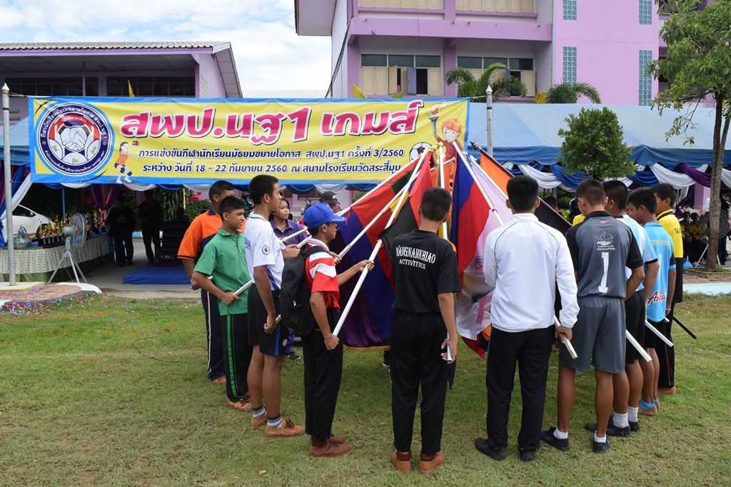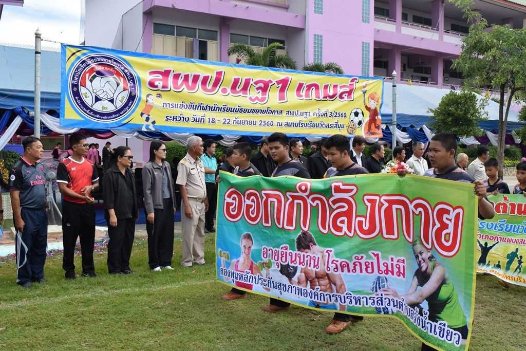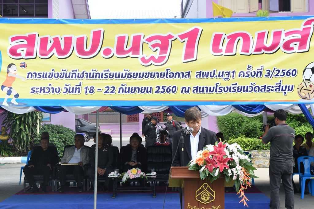 18 กันยายน 2560 พิธีเปิดกีฬาโรงเรียนขยาย สพป.นฐ.1 เกมส์ ณ สนามโรงเรียนวัดสระสี่มุม