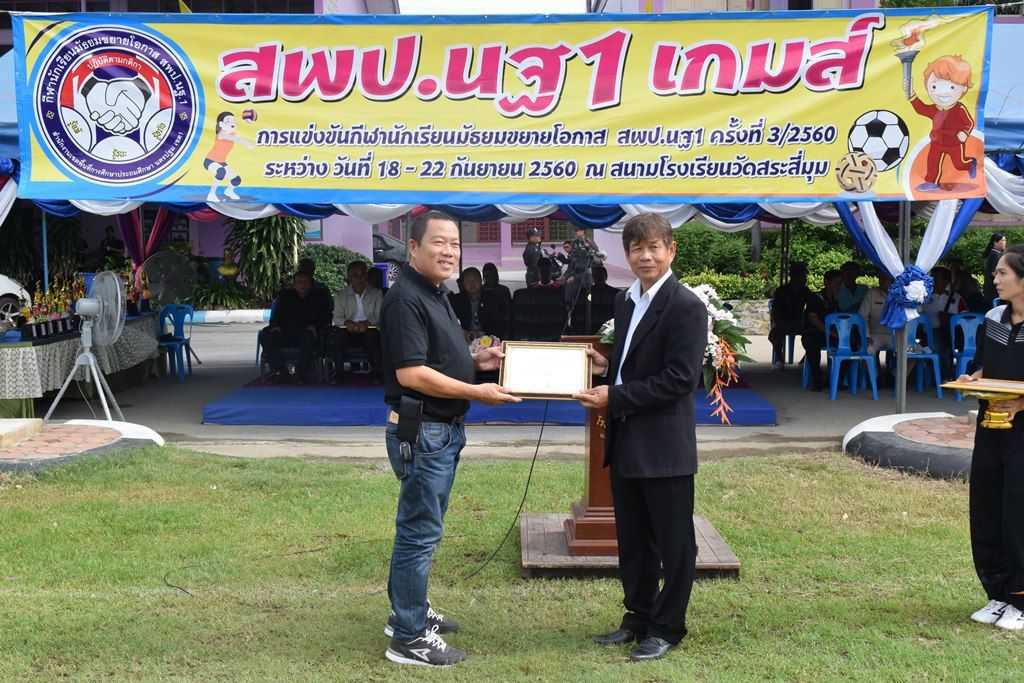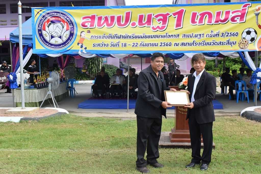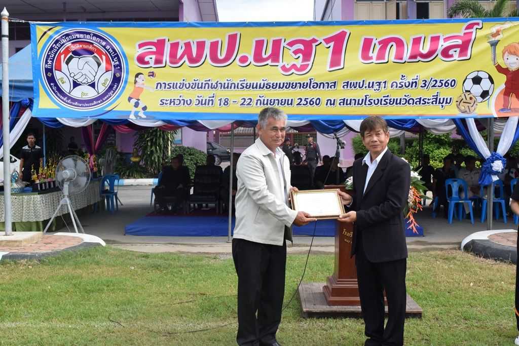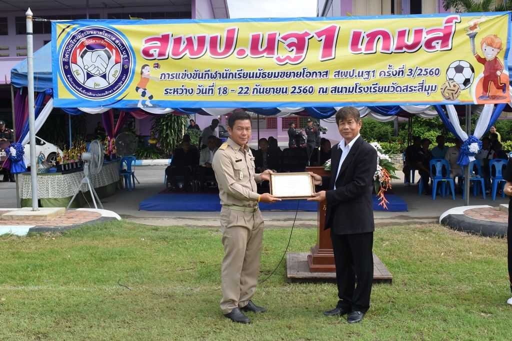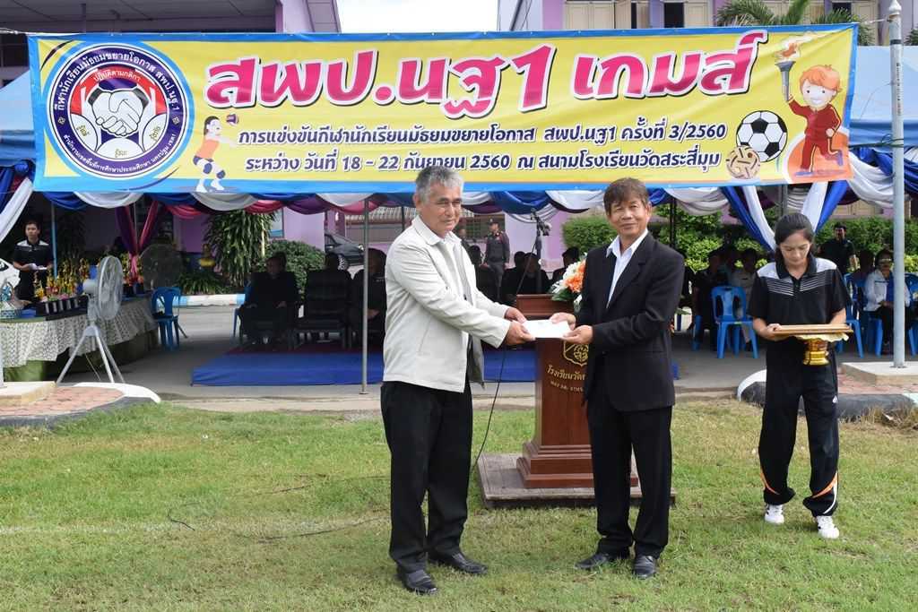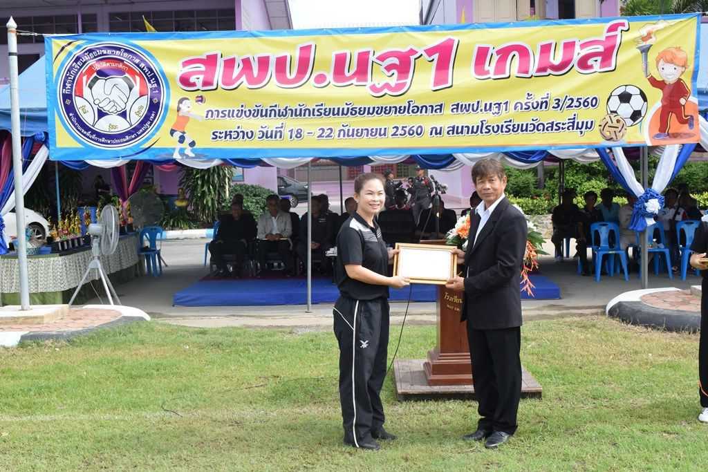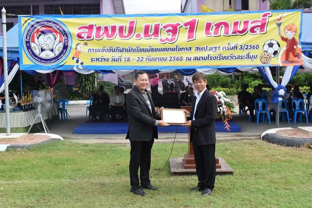 18 กันยายน 2560 พิธีเปิดกีฬาโรงเรียนขยาย สพป.นฐ.1 เกมส์ ณ สนามโรงเรียนวัดสระสี่มุม