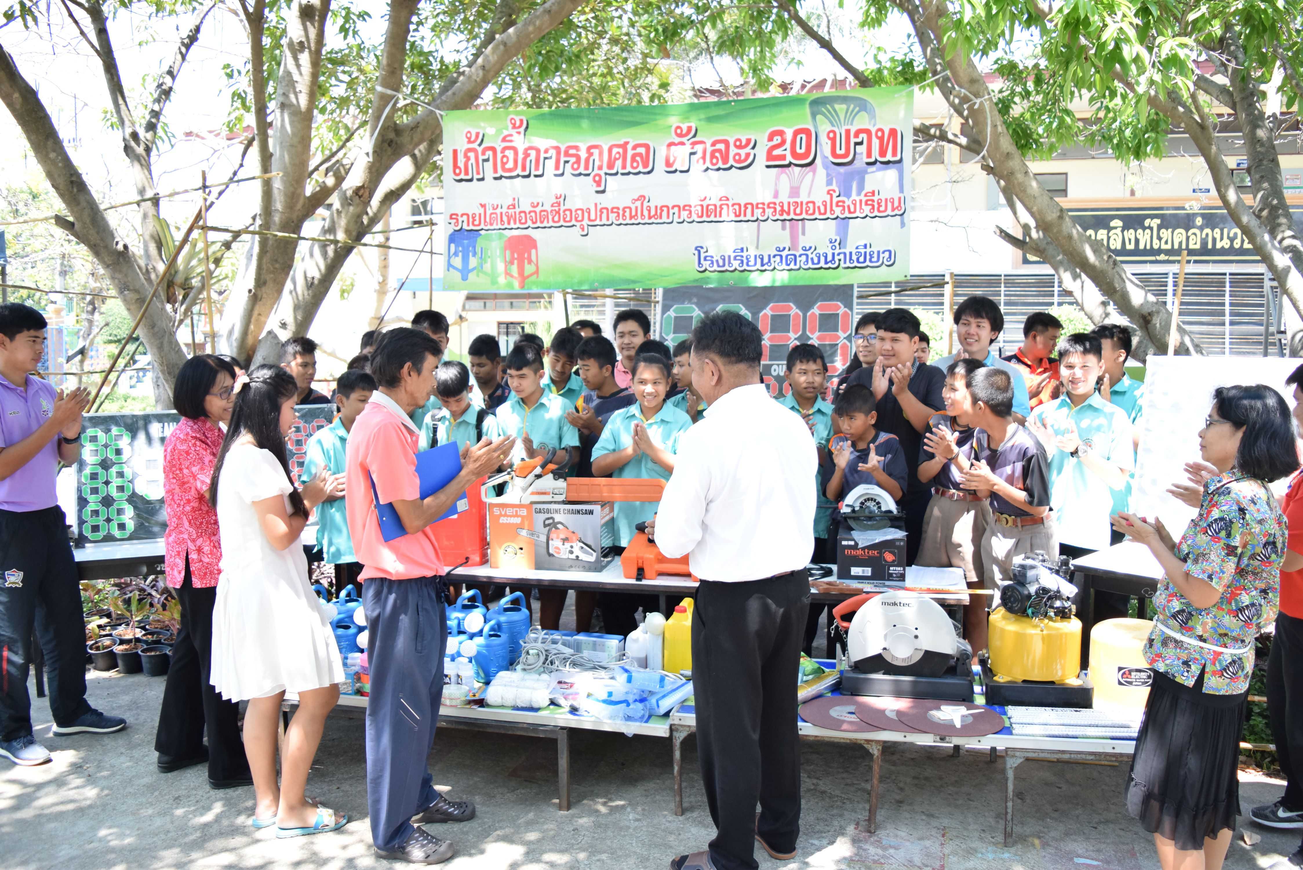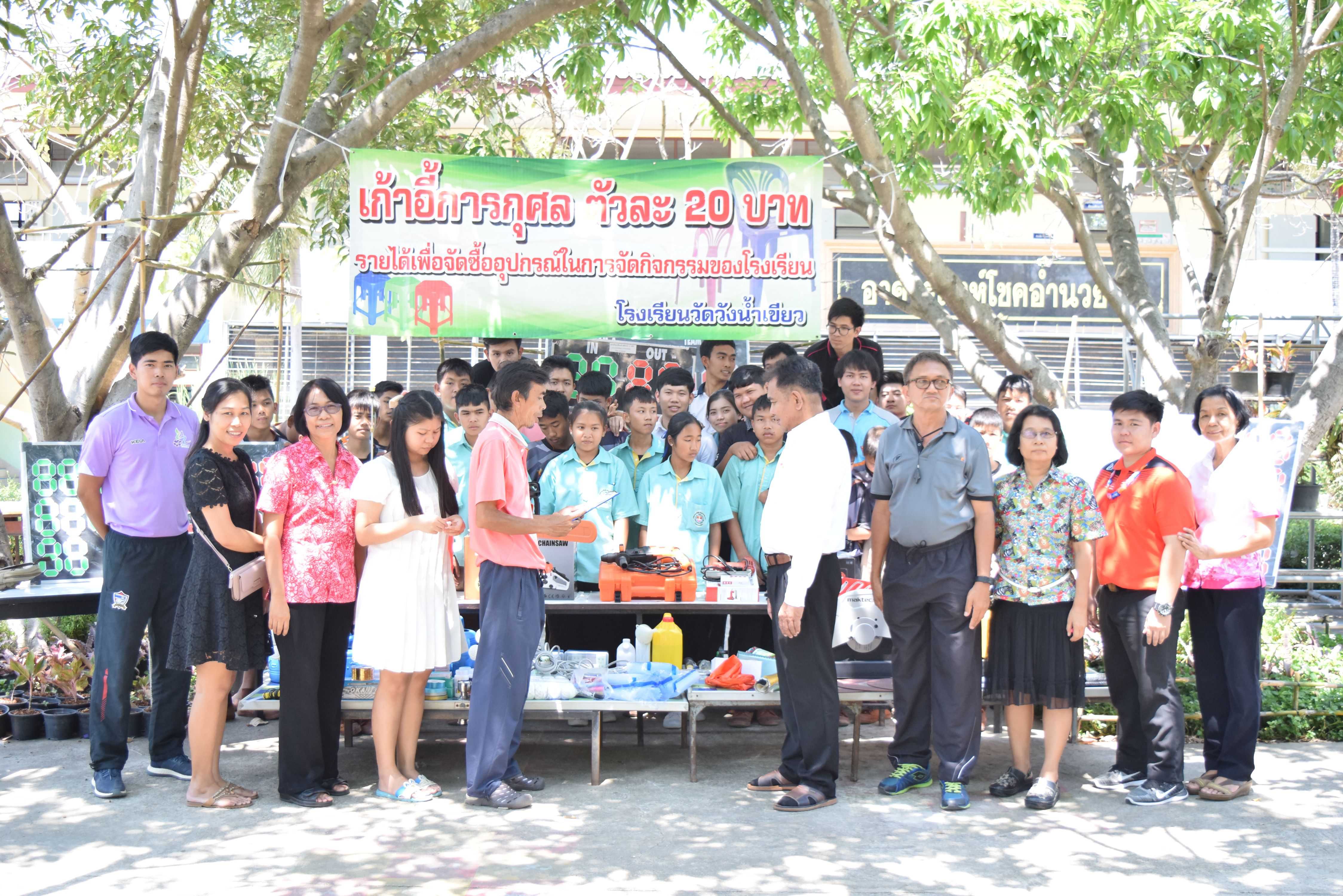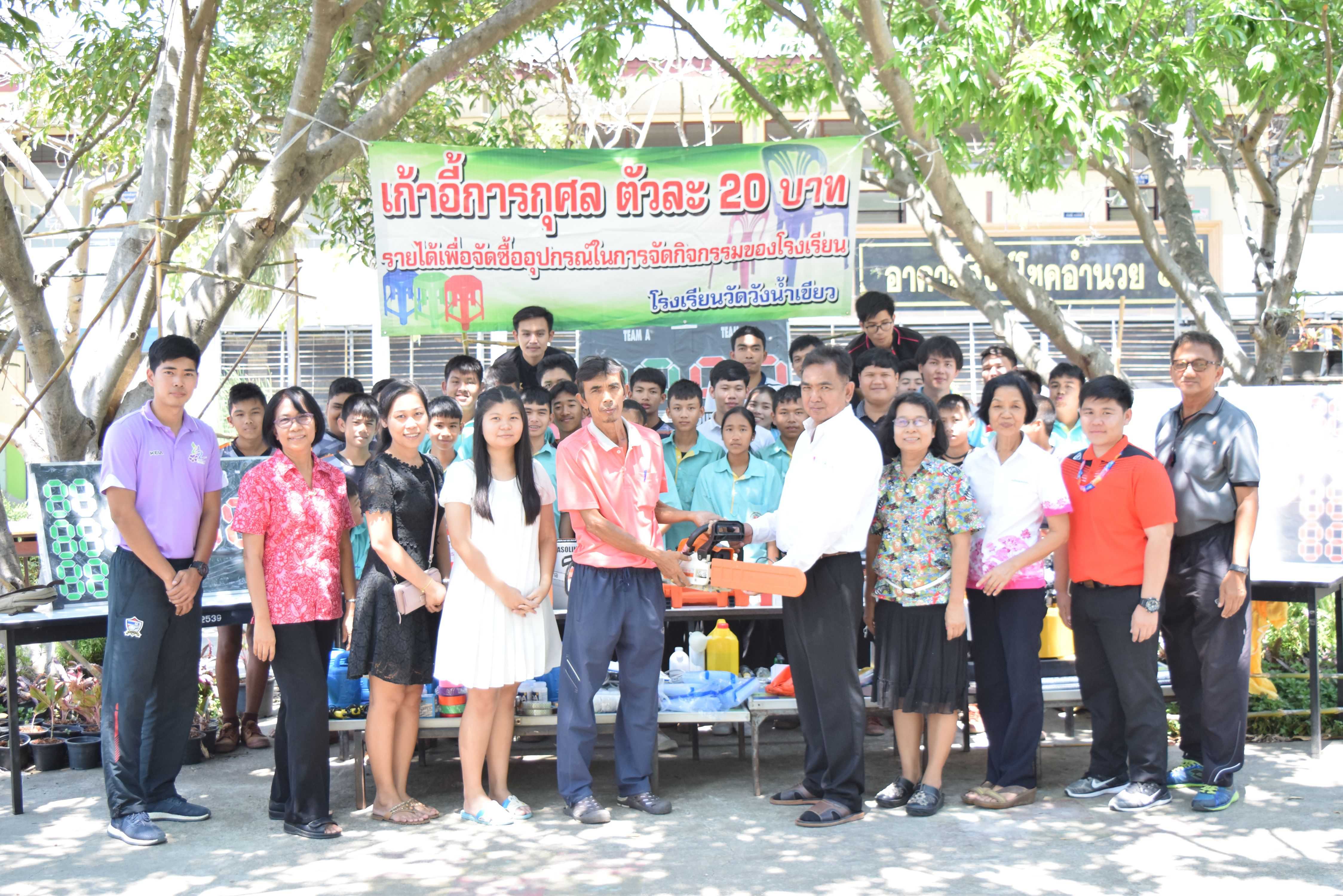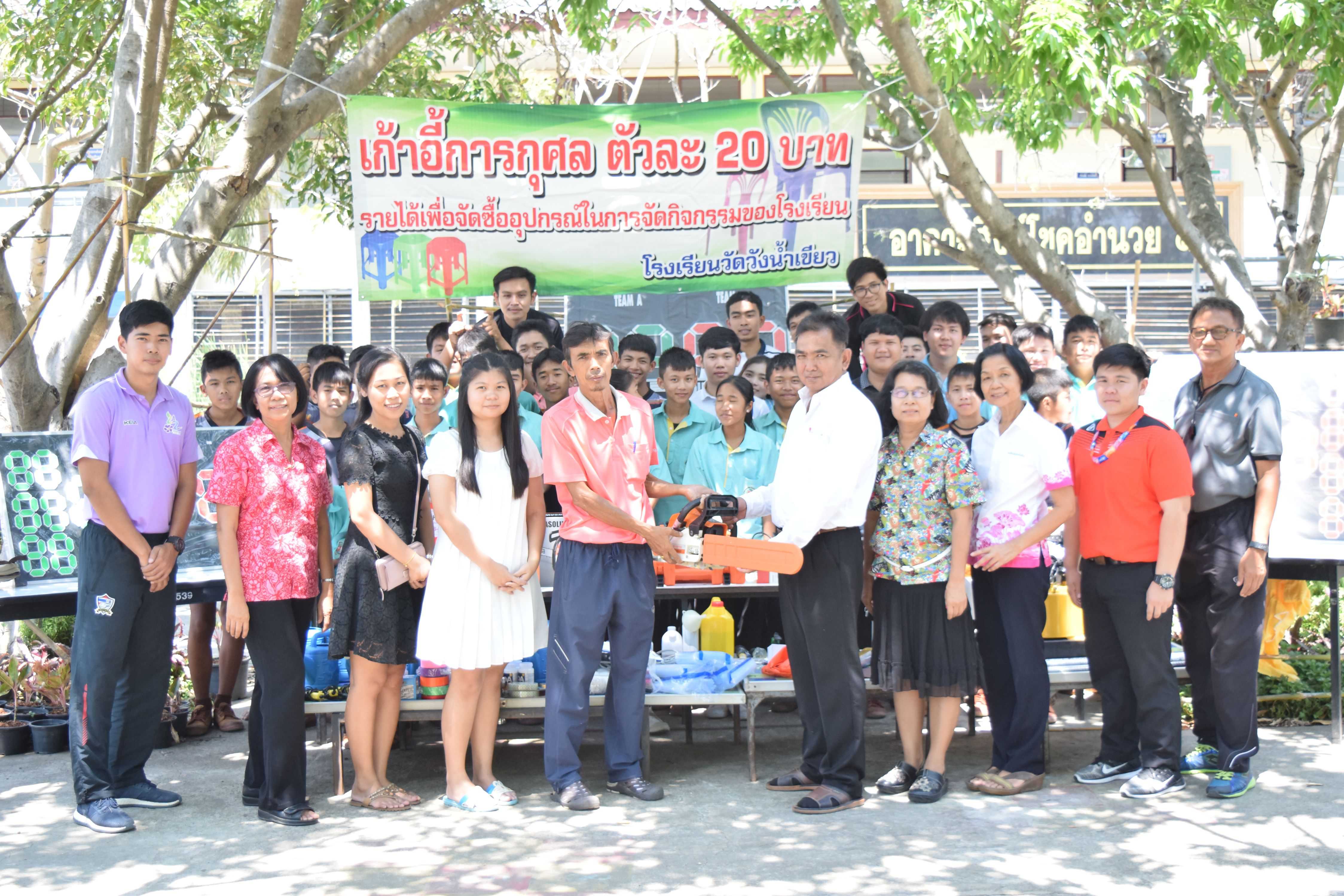 16 มีนาคม 2561 คุณครูสันทัด เขียวคล้าย คณะครูและนักเรียนโรงเรียนวัดวังน้ำเขียว ได้มอบรายได้และอุปกรณ์การศึกษาที่ได้จากการขายเก้าอี้การกุศลในงานปิดทองฝังลูกนิมิต ณ วัดคลองตัน โดย นายพยงค์ แก่นสำราญ ผู้อำนวยการโรงเรียนเป็นผู้แทนในการรับมอบ S:1
