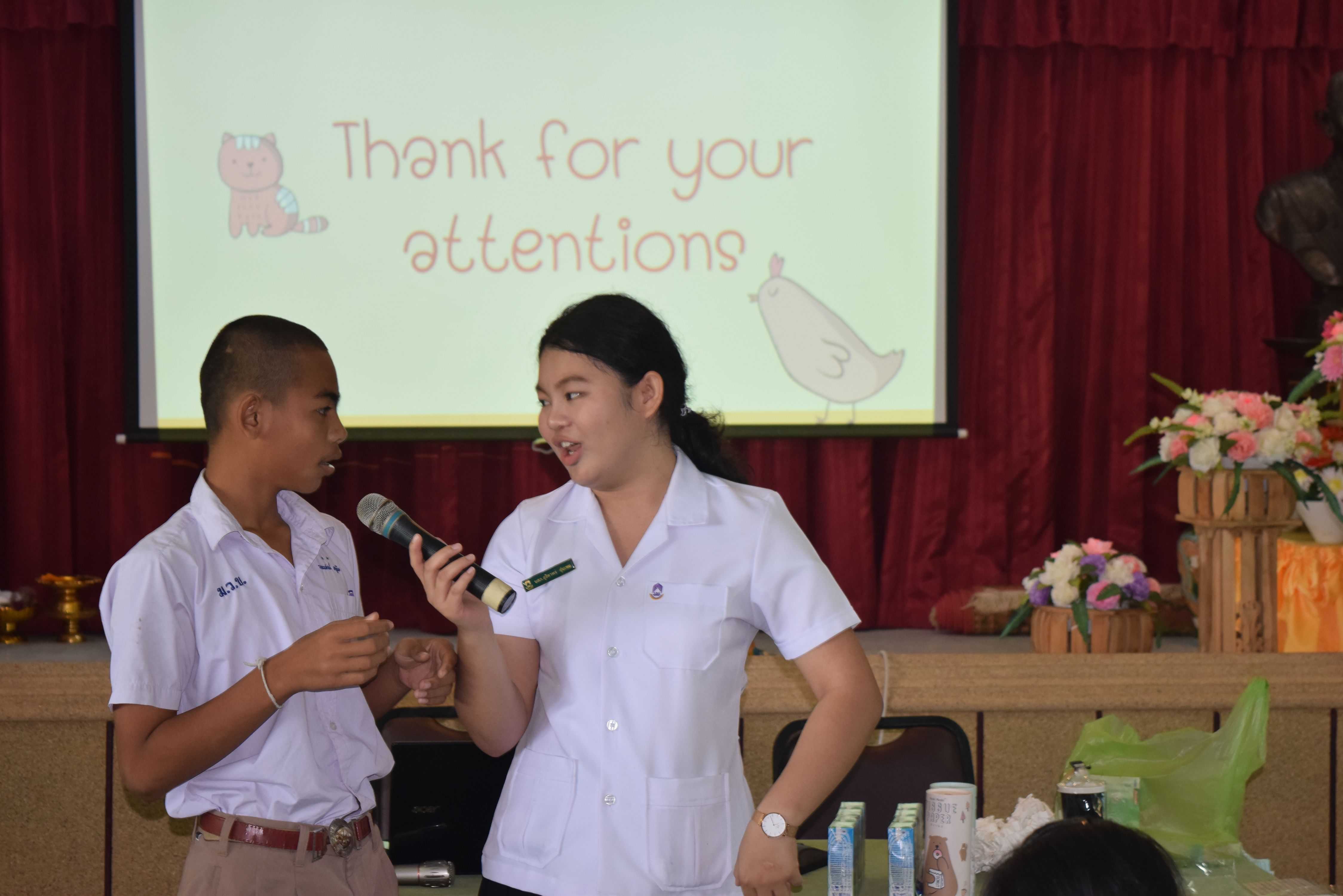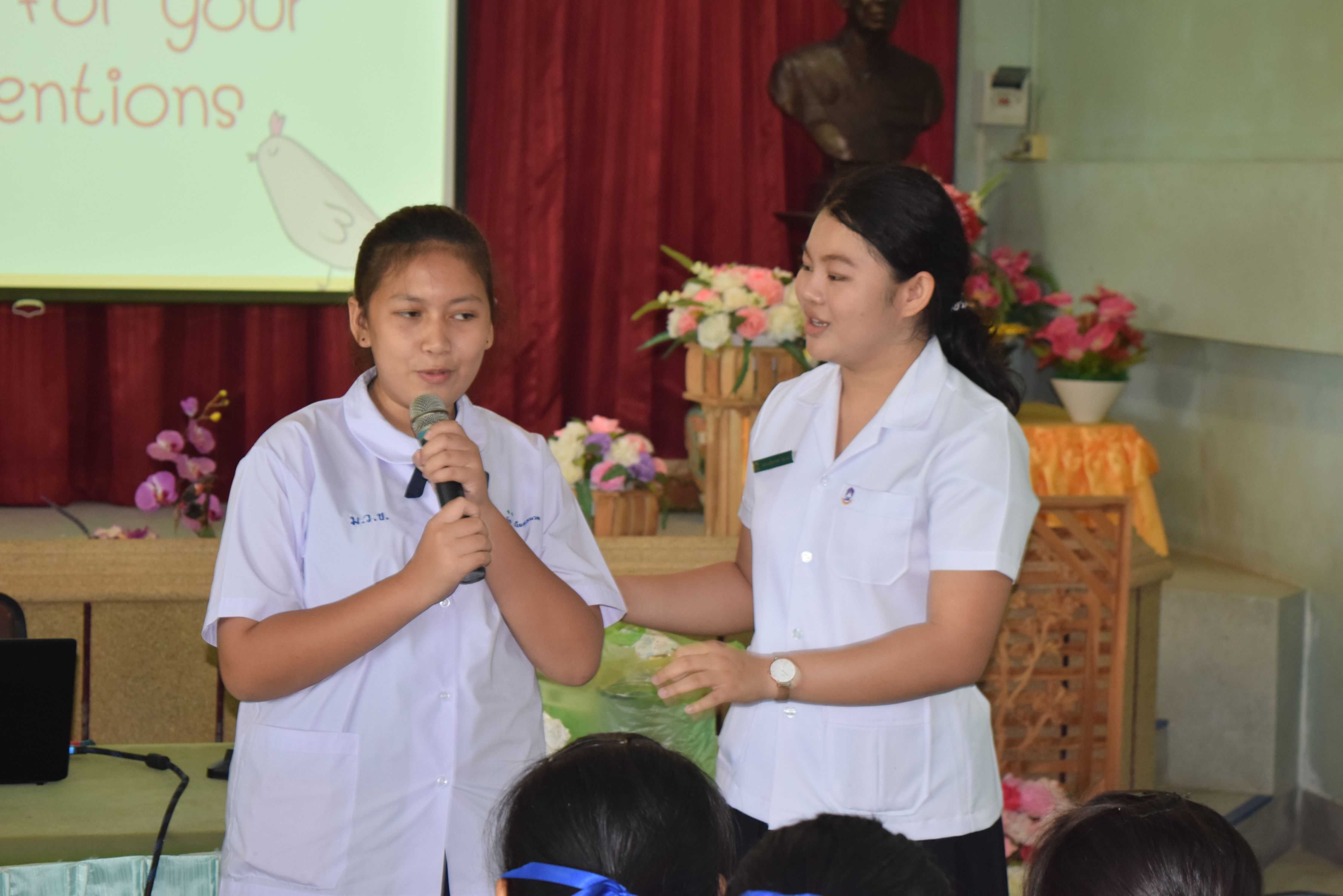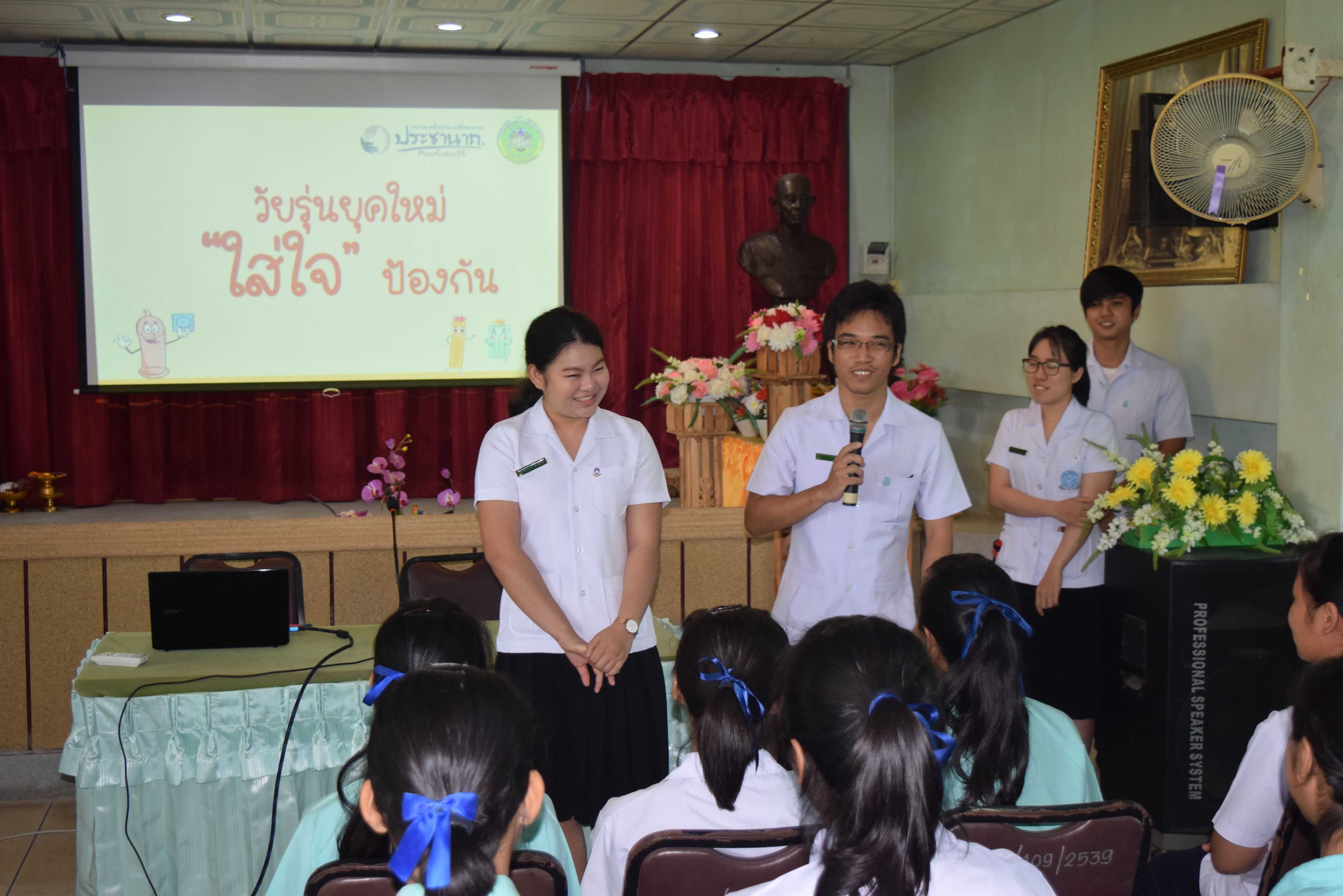 28 มิถุนายน 2561 กิจกรรมอบรม วัยรุ่นวัยใส ใส่ใจป้องกัน โดย นักศึกษา สาขาเภสัชศาสตร์ มหาวิทยาลัยศิลปากร วิทยาเขตสนามจันทร์ ได้มาให้ความรู้เกี่ยวกับยาคุมกำเนิดและถุงยางอนามัย S:1