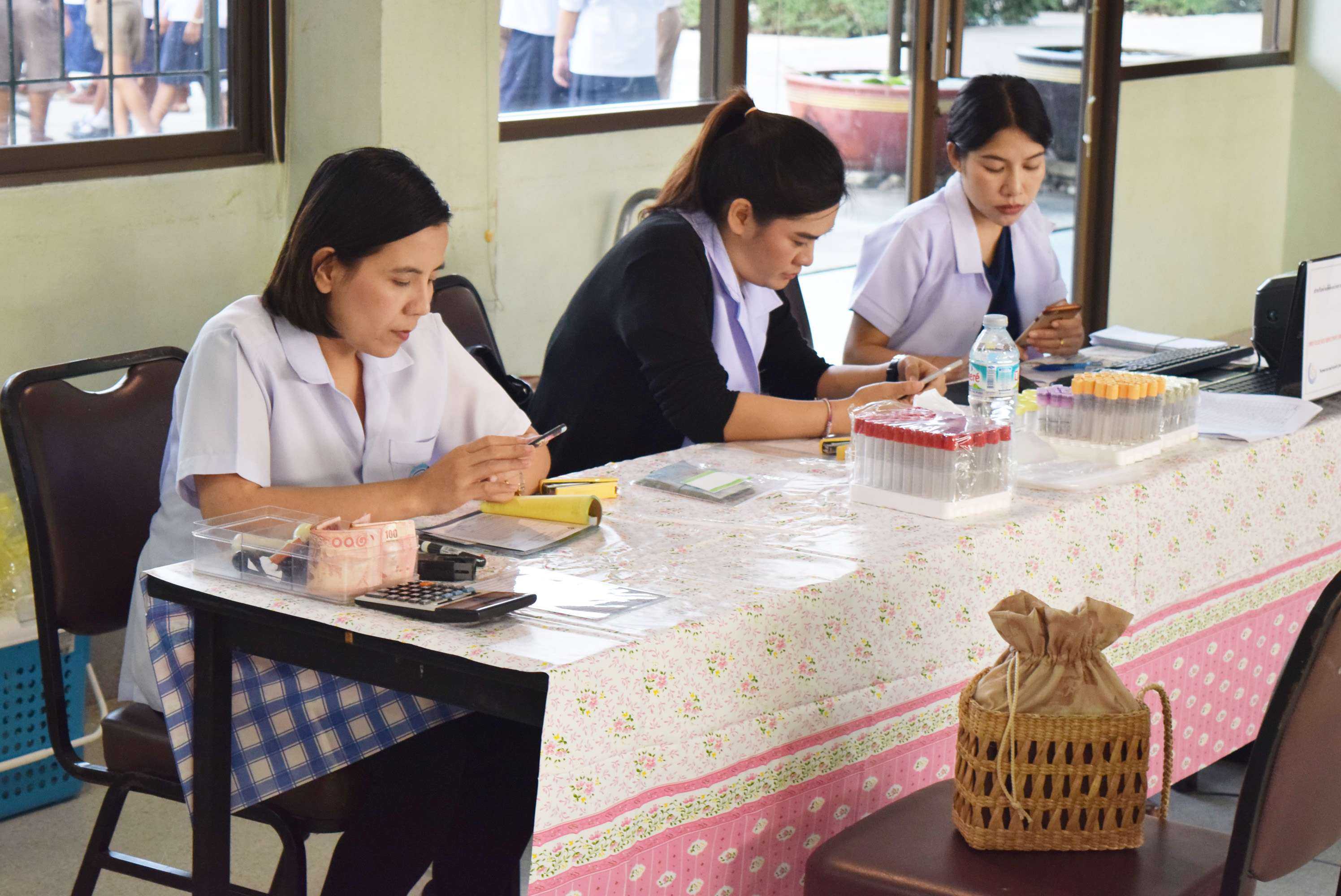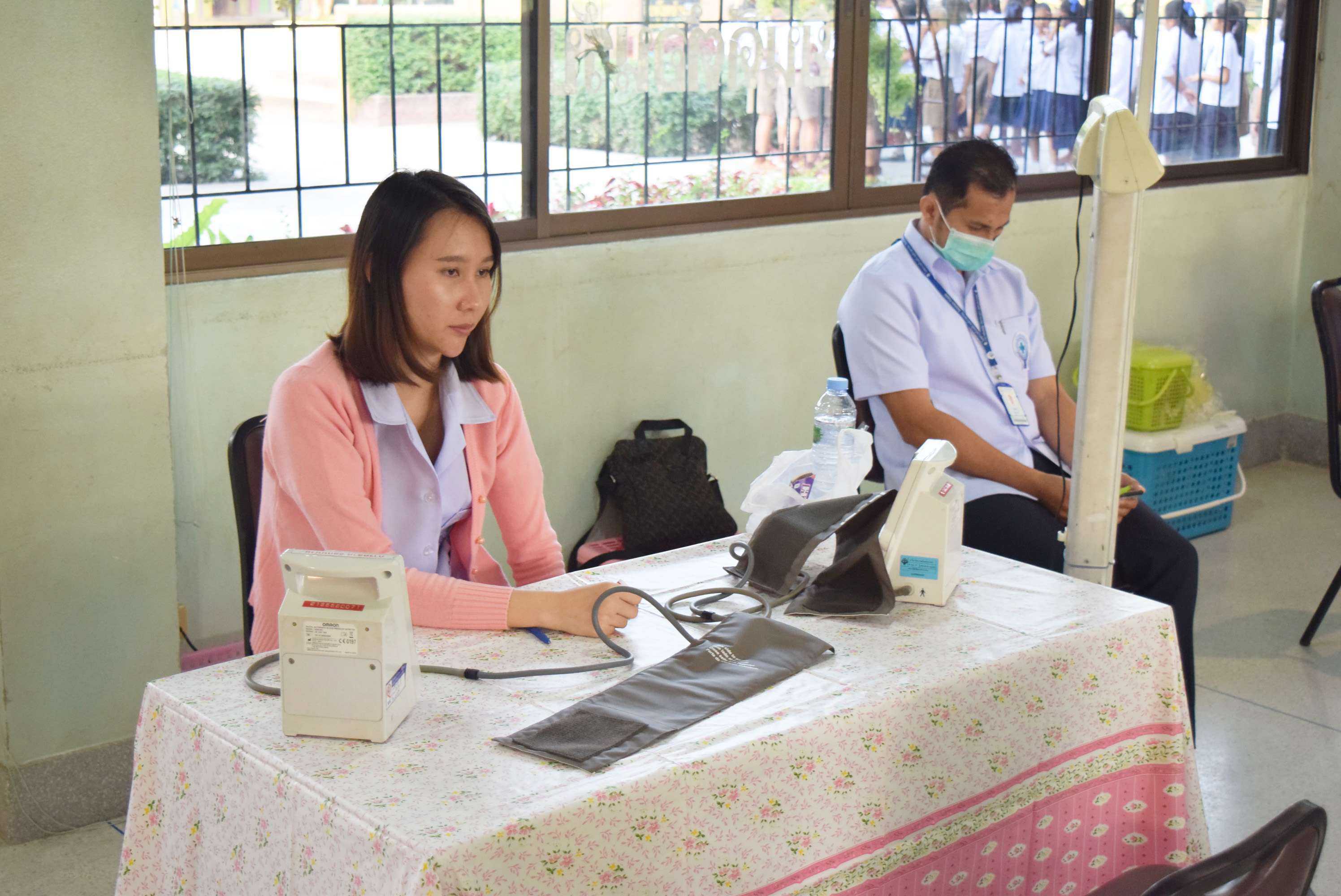 8 ม.ค.2562 เจ้าหน้าที่โรงพยาบาลบ้านแพ้ว ตรวจสุขภาพคณะครู