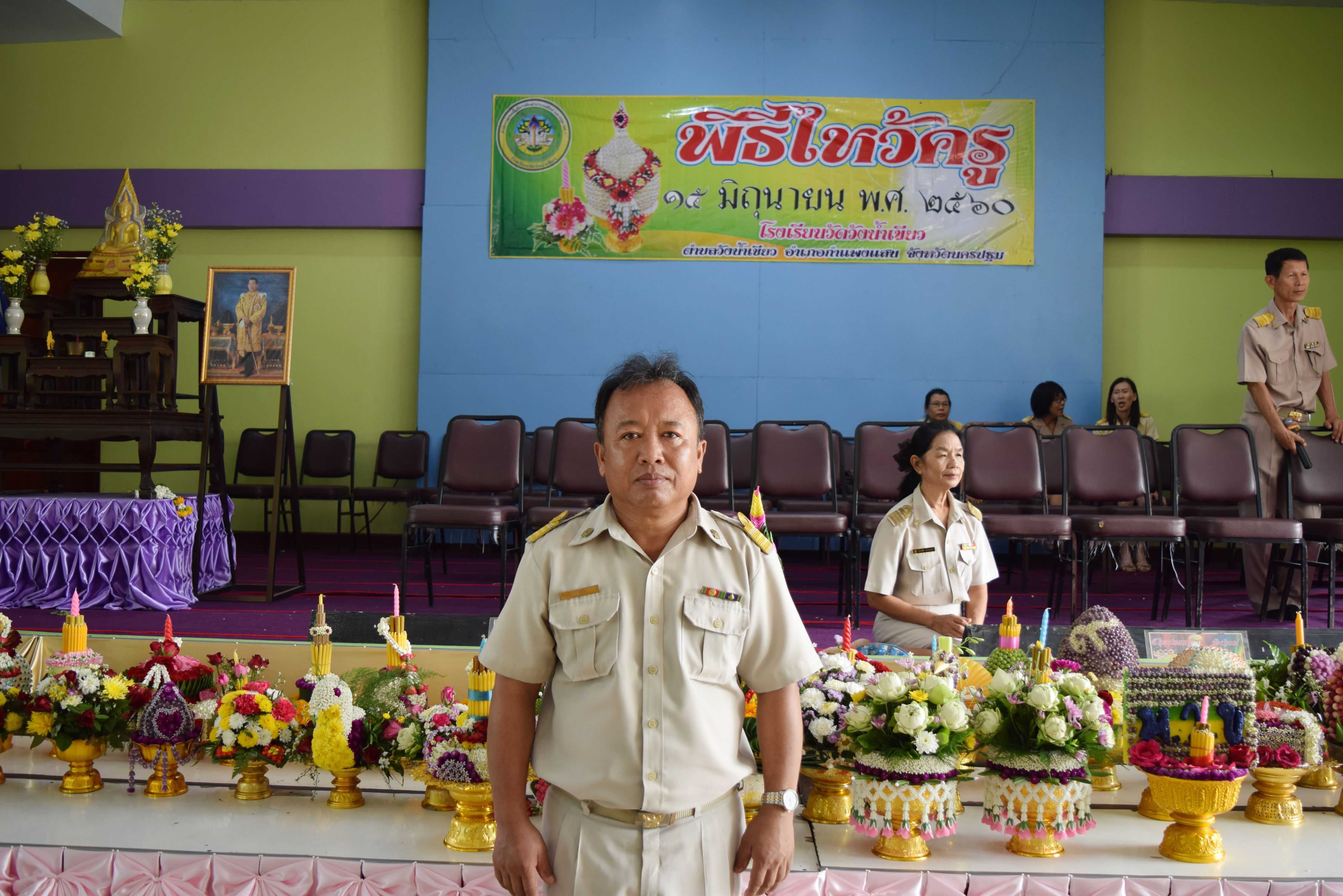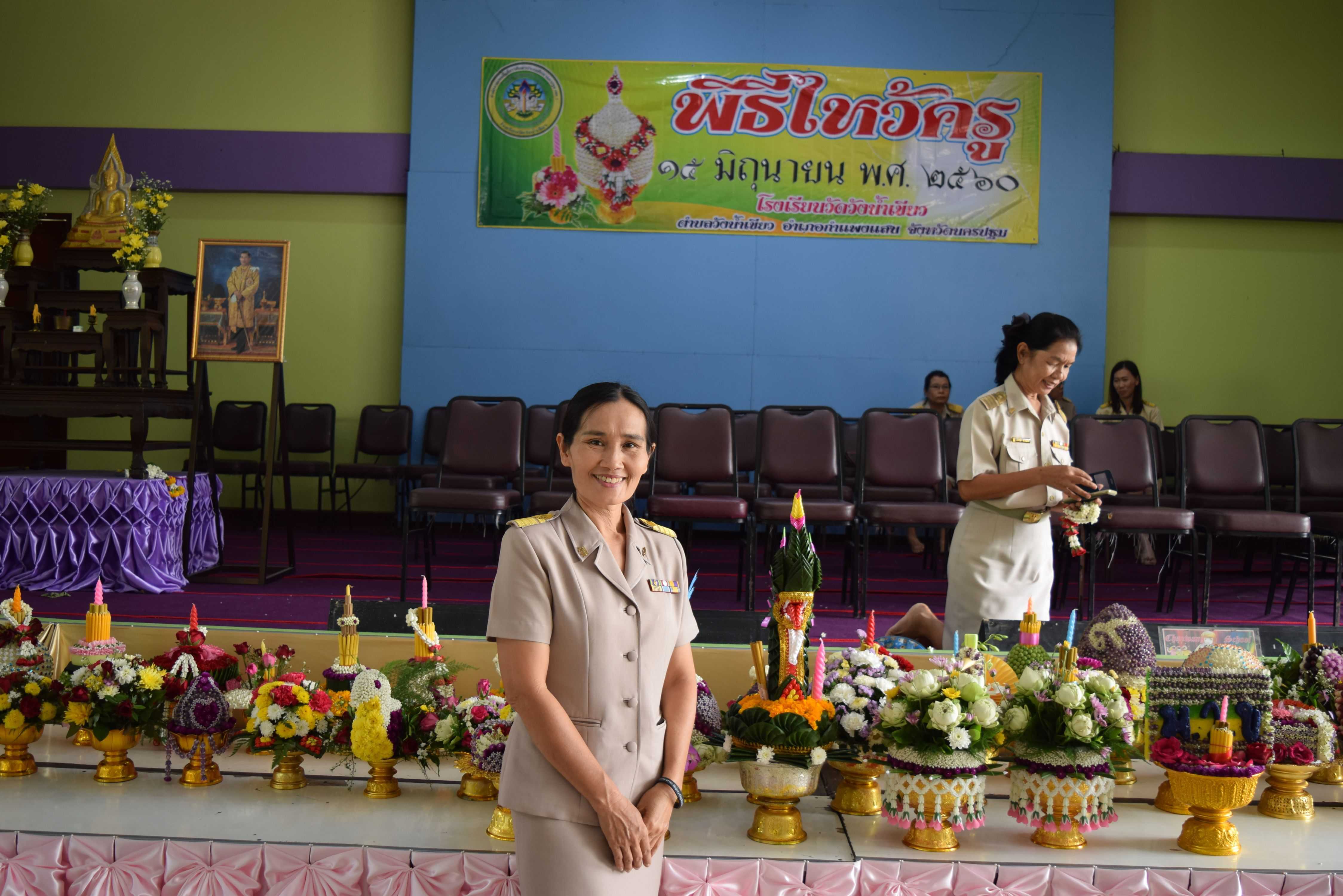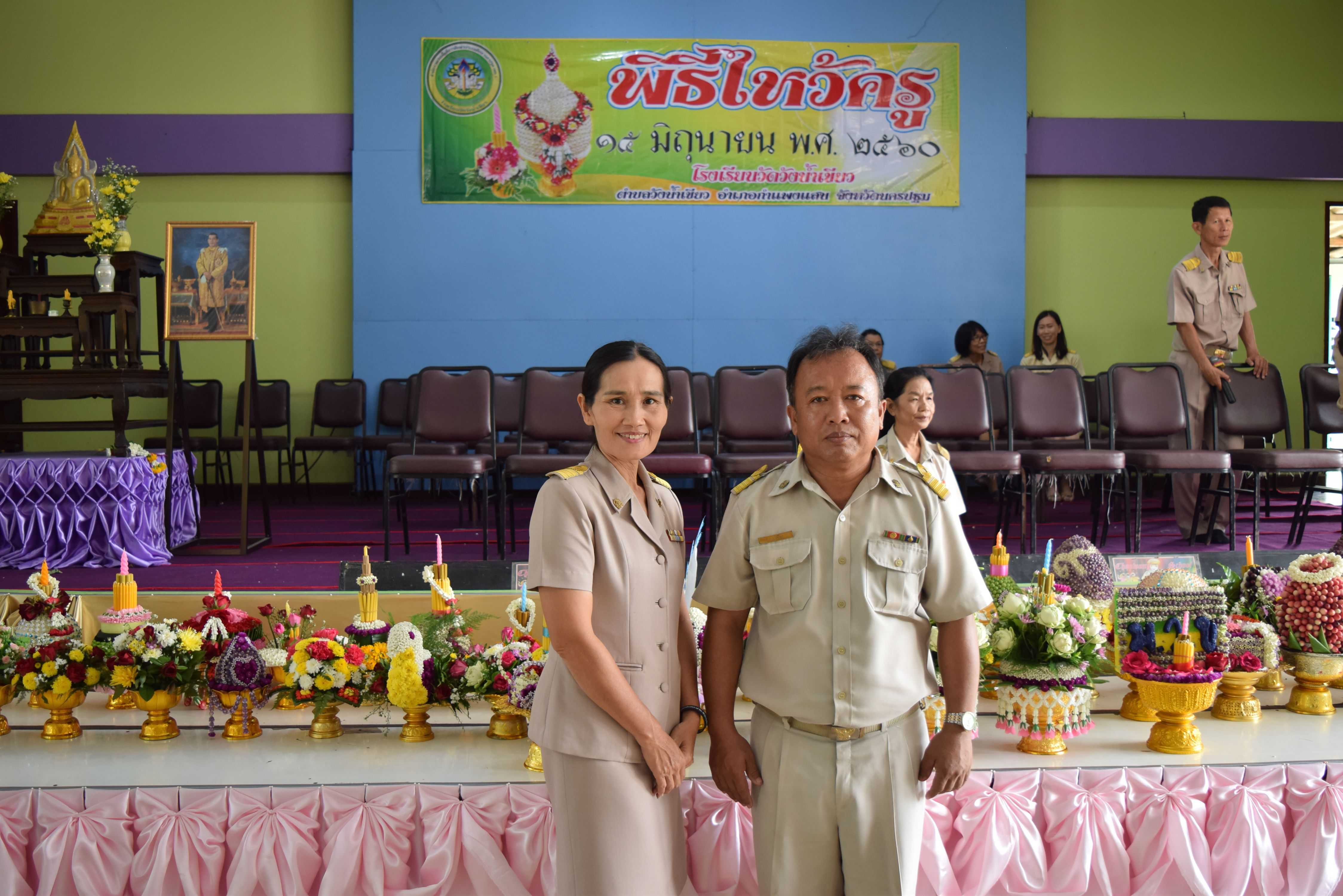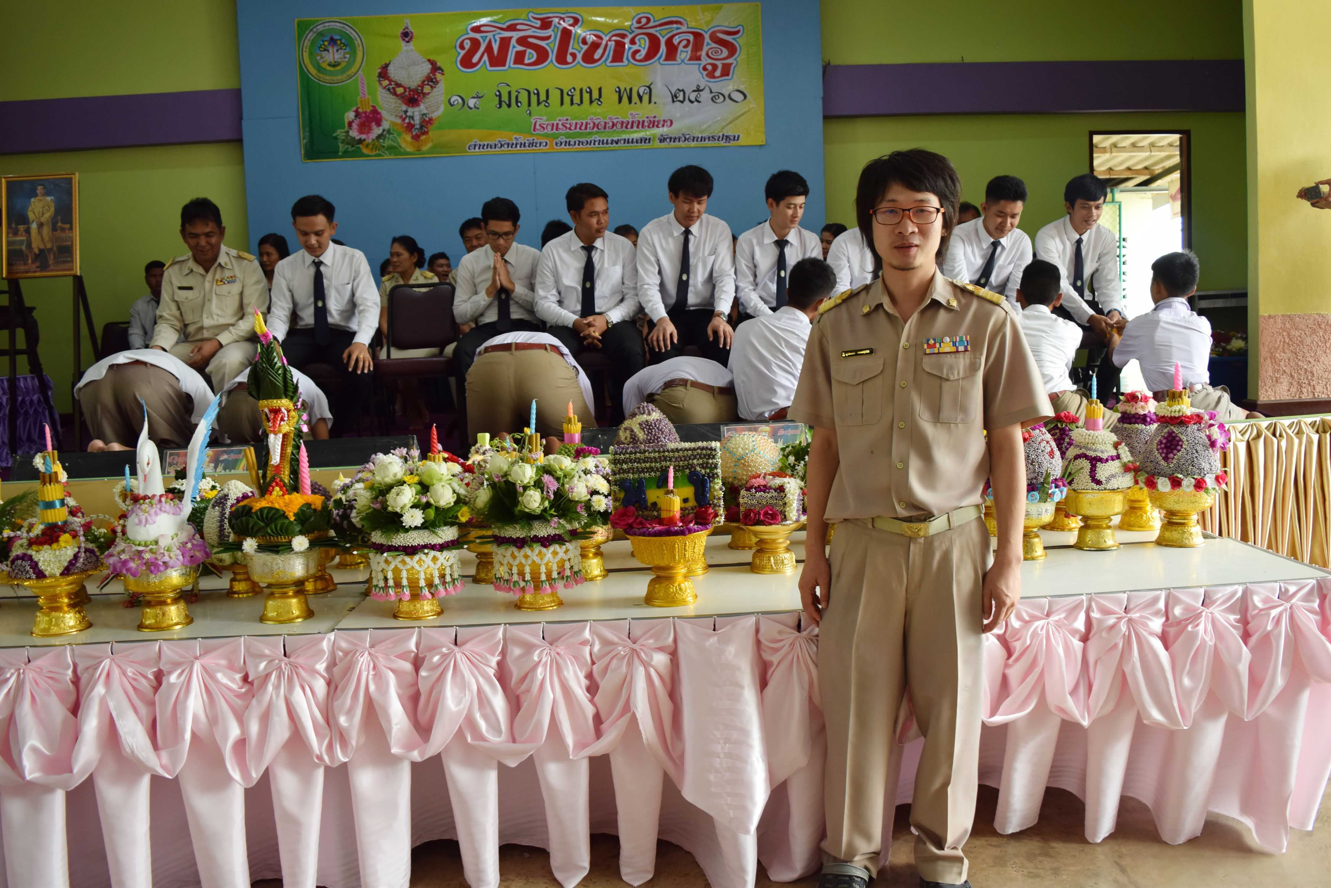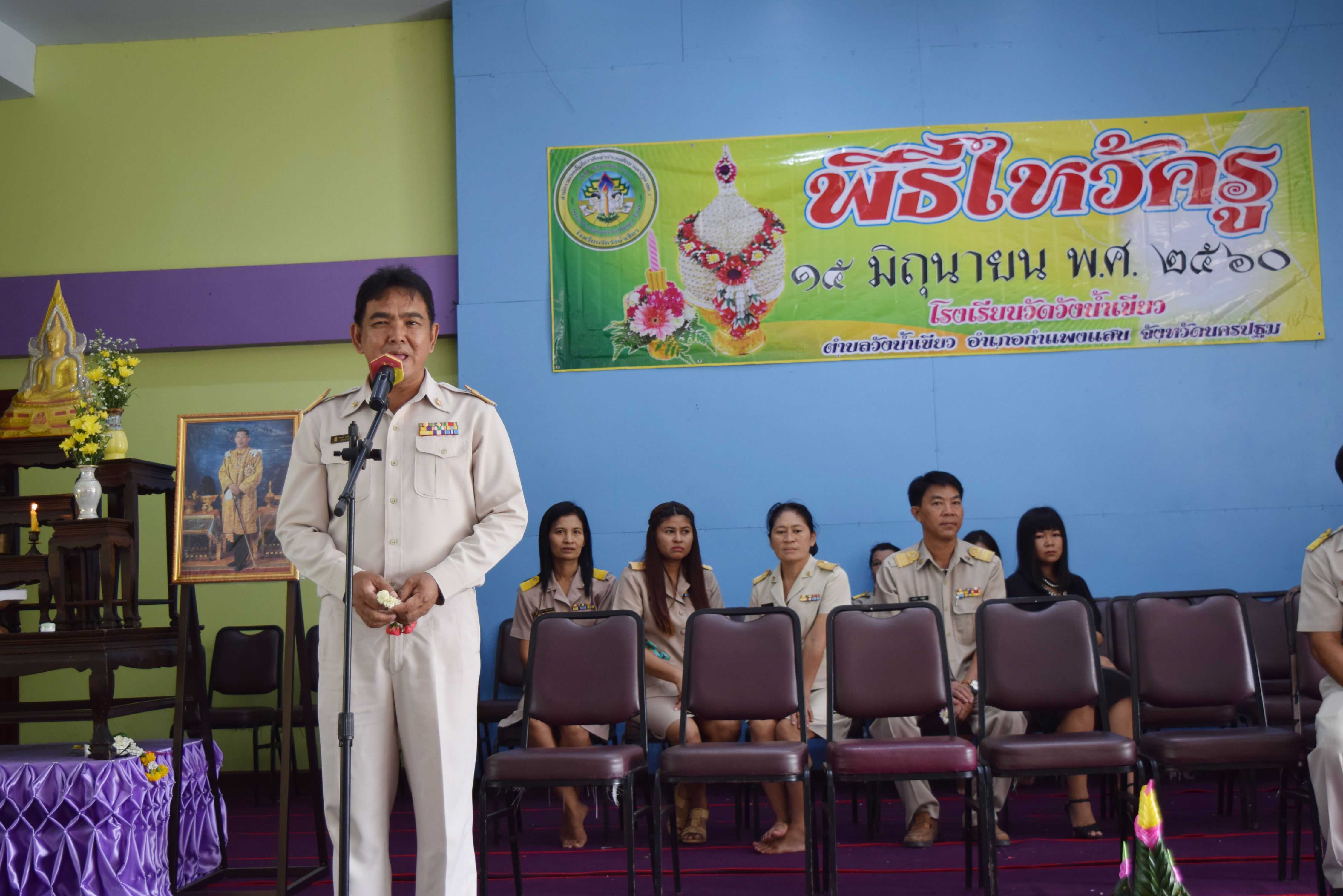 15 มิถุนายน 2560 พิธีไหว้ครู ปีการศึกษา 2560 นายพยงค์ แก่นสำราญ ผู้อำนวยการโรงเรียนวัดวังน้ำเขียว ประธานในพิธี โดยมีคณะครู นิสิต นักศึกษาฝึกประสบการณ์วิชาชีพครู และนักเรียนทุกระดับชั้น เข้าร่วมในพิธีการ S:1