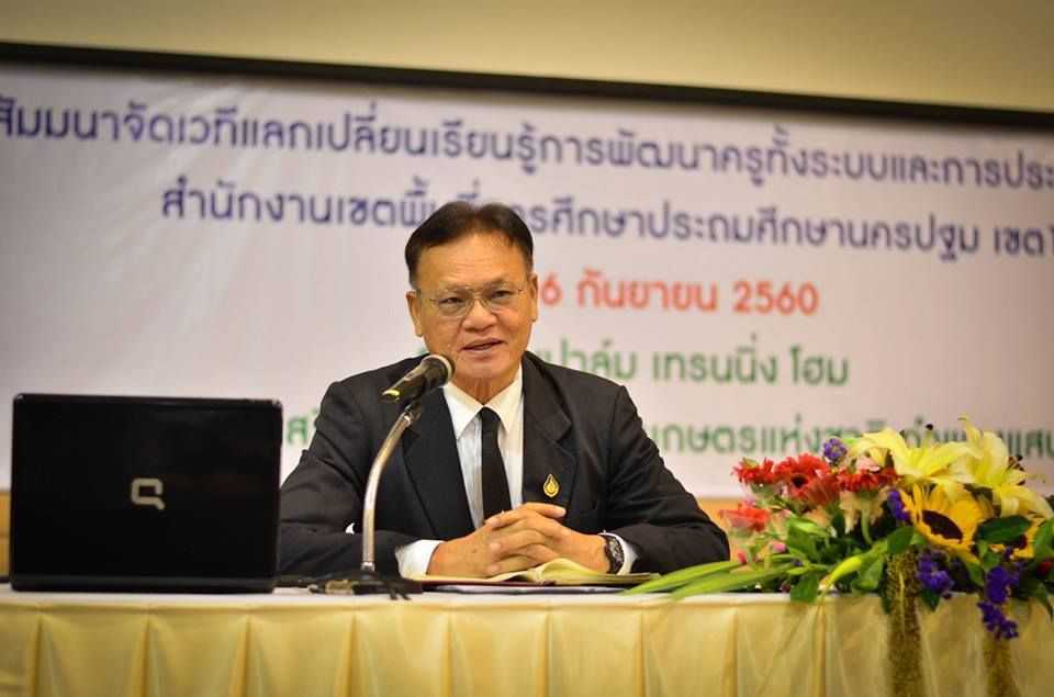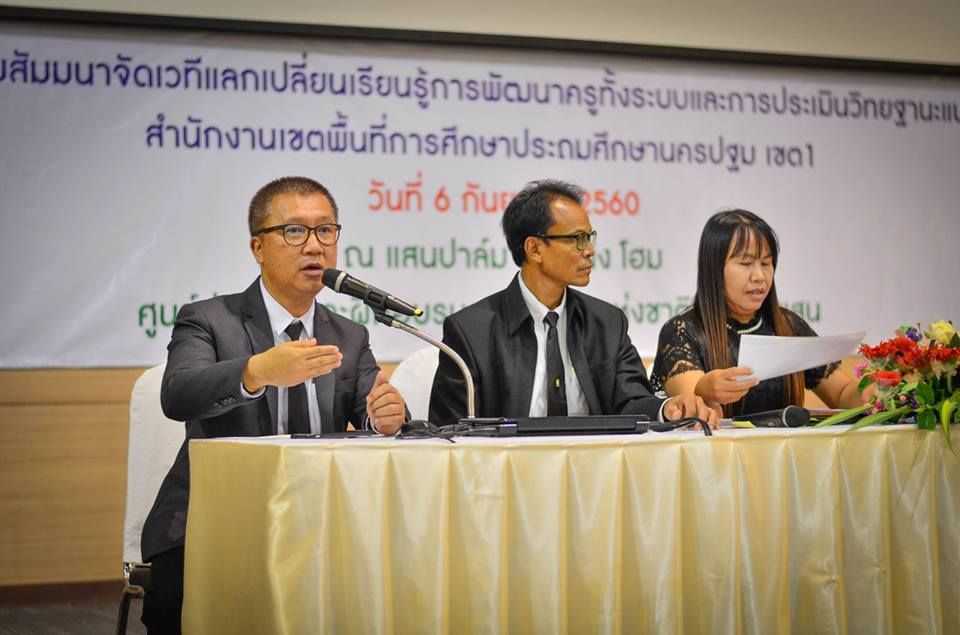 6 กันยายน 2560 การประชุมสัมมนา เวทีแลกเปลี่ยนเรียนรู้การพัฒนาครูทั้งระบบและการประเมินวิทยฐานะแนวใหม่ สำนักงานเขตพื้นที่การศึกษาประถมศึกษานครปฐม เขต 1 ณ แสนปาล์มเทรนนิ่งโฮม