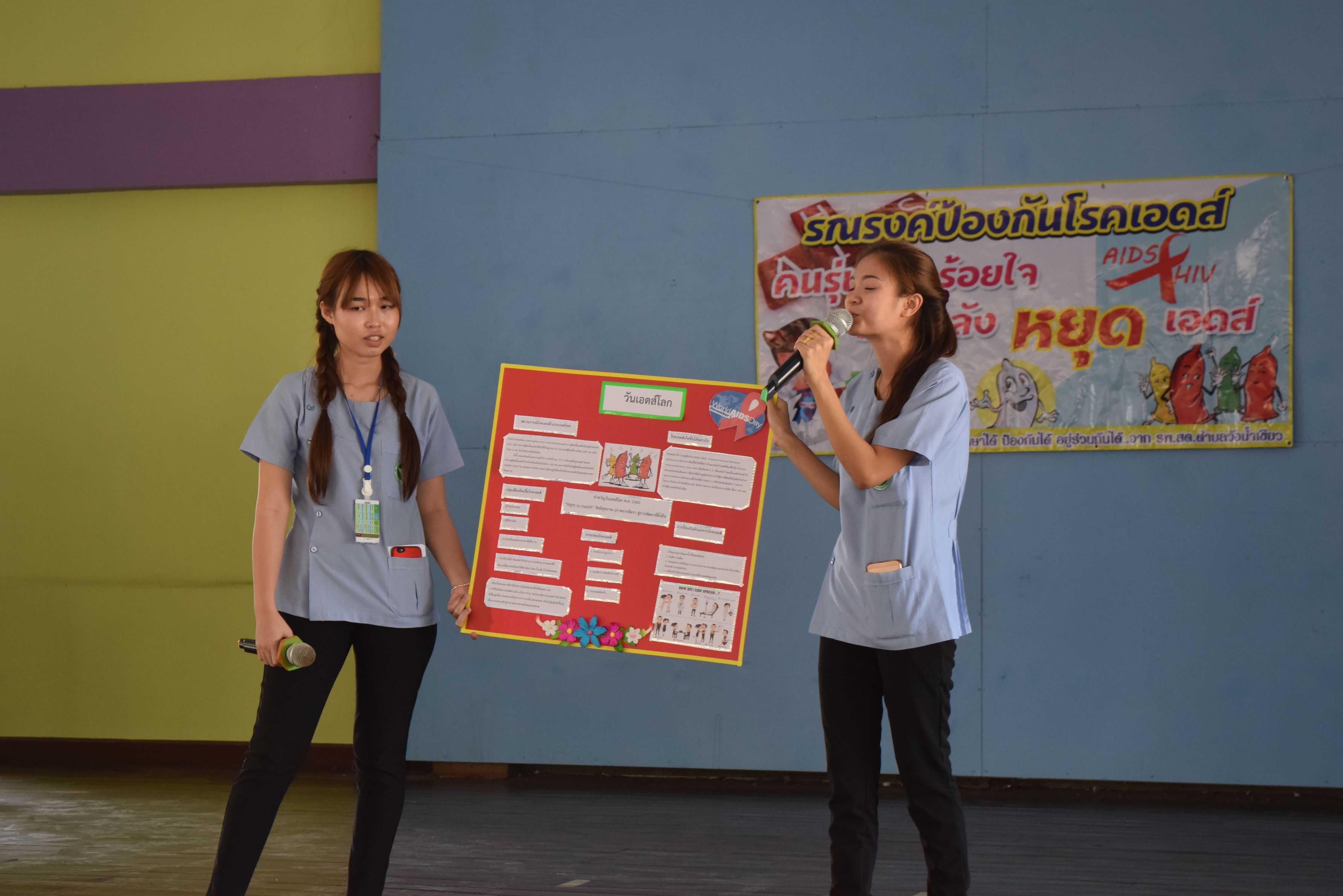 1 ธันวาคม 2560 เจ้าหน้าที่จากโรงพยาบาลส่งเสริมสุขภาพตำบลวังน้ำเขียว ได้เข้ามาให้ความรู้เกี่ยวกับการใช้ถุงยางอนามัย เนื่องในวันเอดส์โลก