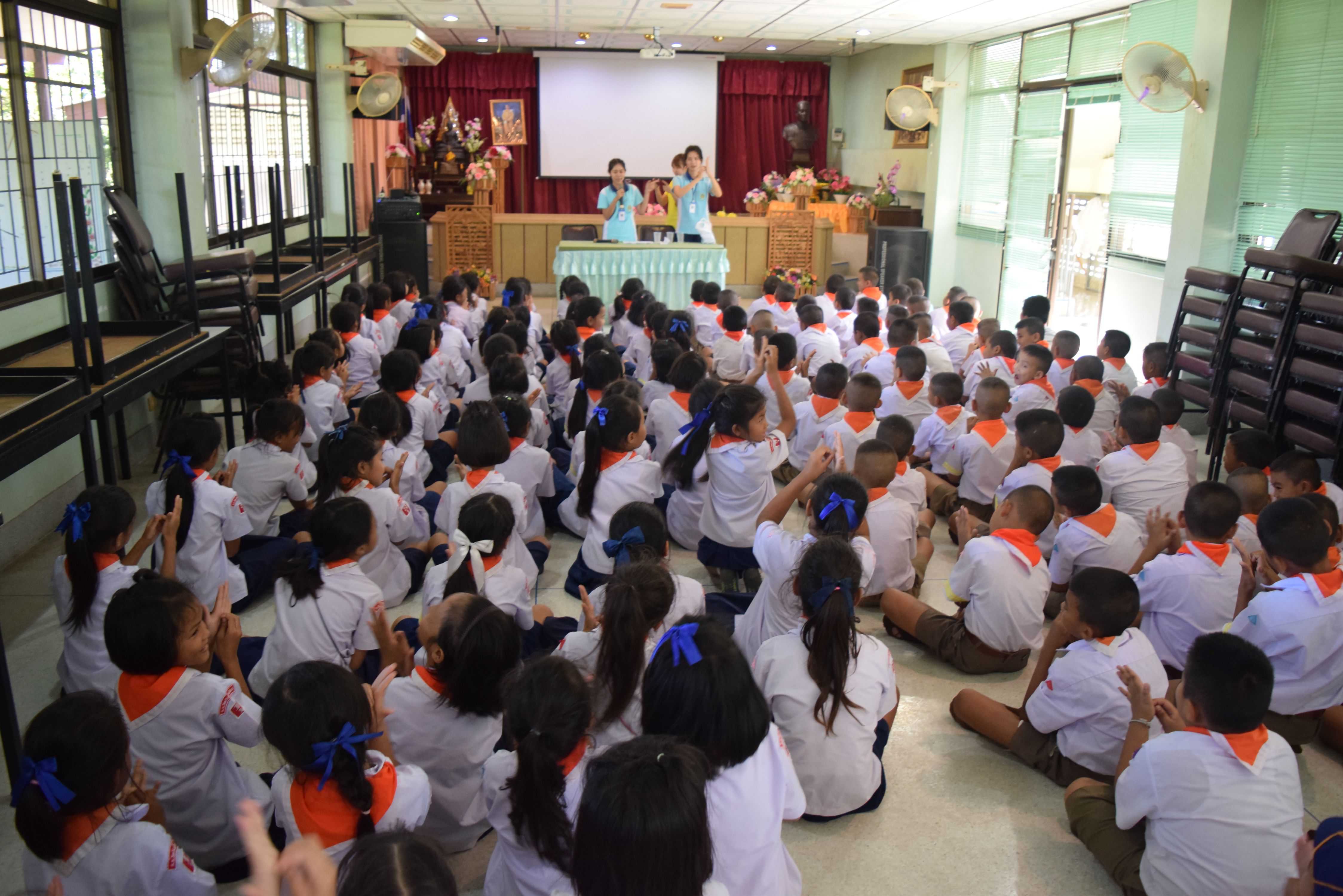 13 ธันวาคม 2560 เจ้าหน้าที่จากโรงพยาบาลส่งเสริมสุขภาพตำบลวังน้้ำเขียว ได้เข้ามาให้ความรู้เกี่ยวกับโรคมือ เท้า ปาก กับนักเรียนระดับชั้นประถมศึกษาปีที่ 1 - 3 S:1