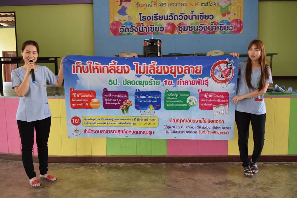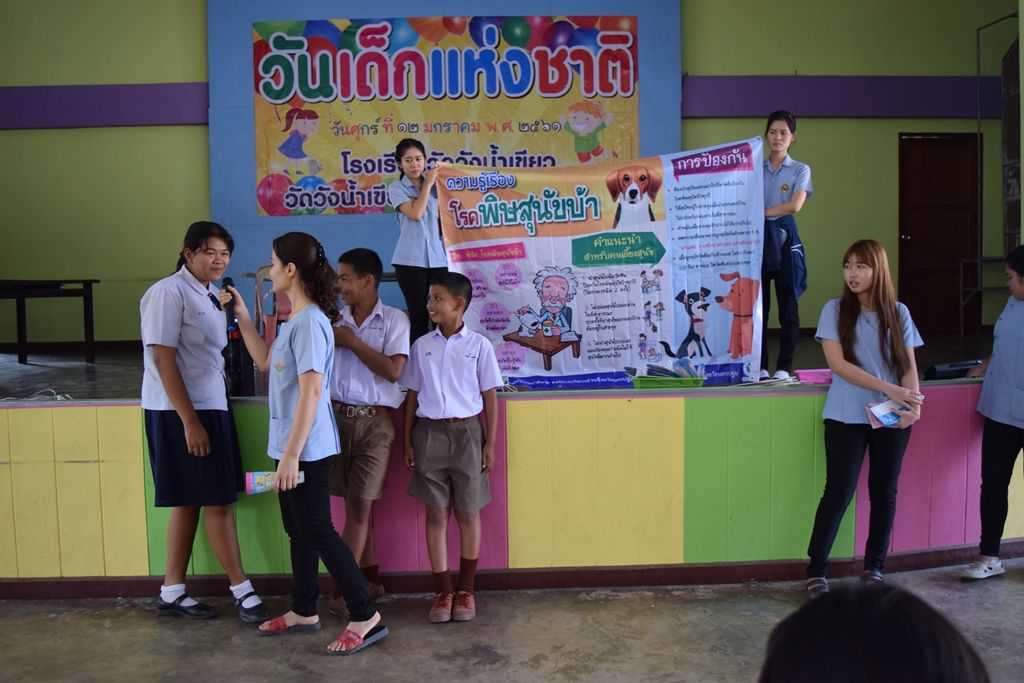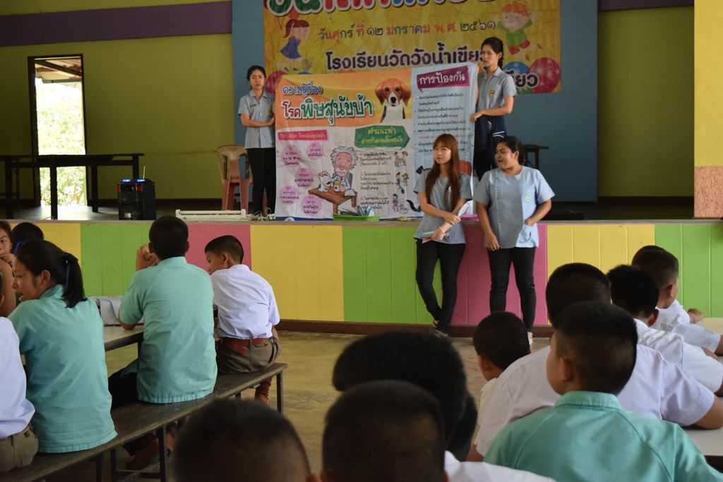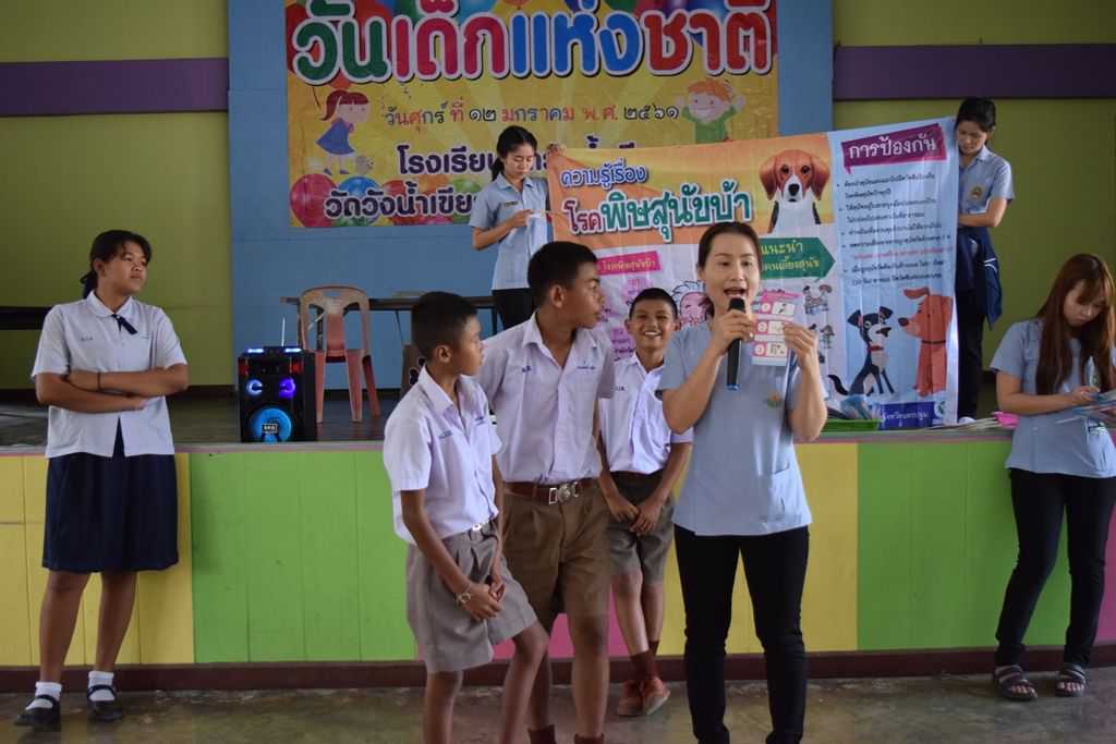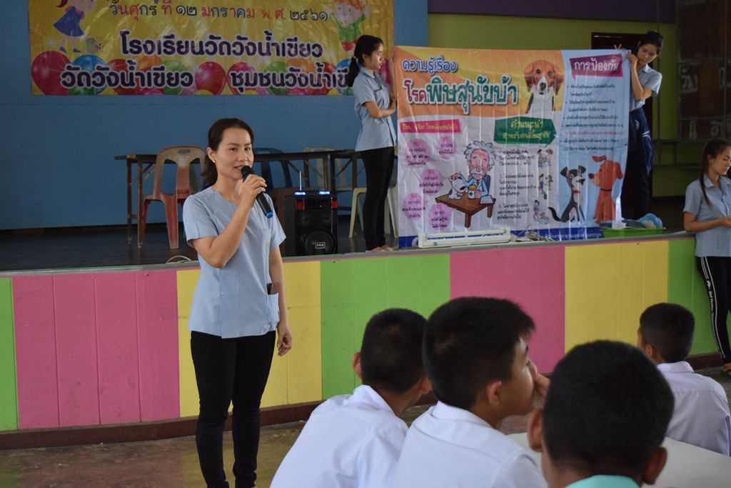 18 มกราคม 2561 เจ้าหน้าที่โรงพยาบาลส่งเสริมสุขภาพตำบลวังน้ำเขียว ได้เข้ามาให้ความรู้เกี่ยวกับโรคพิษสุนัขบ้า การล้างมือที่ถูกวิธี การกำจัดยุงลาย ฯลฯ S:1