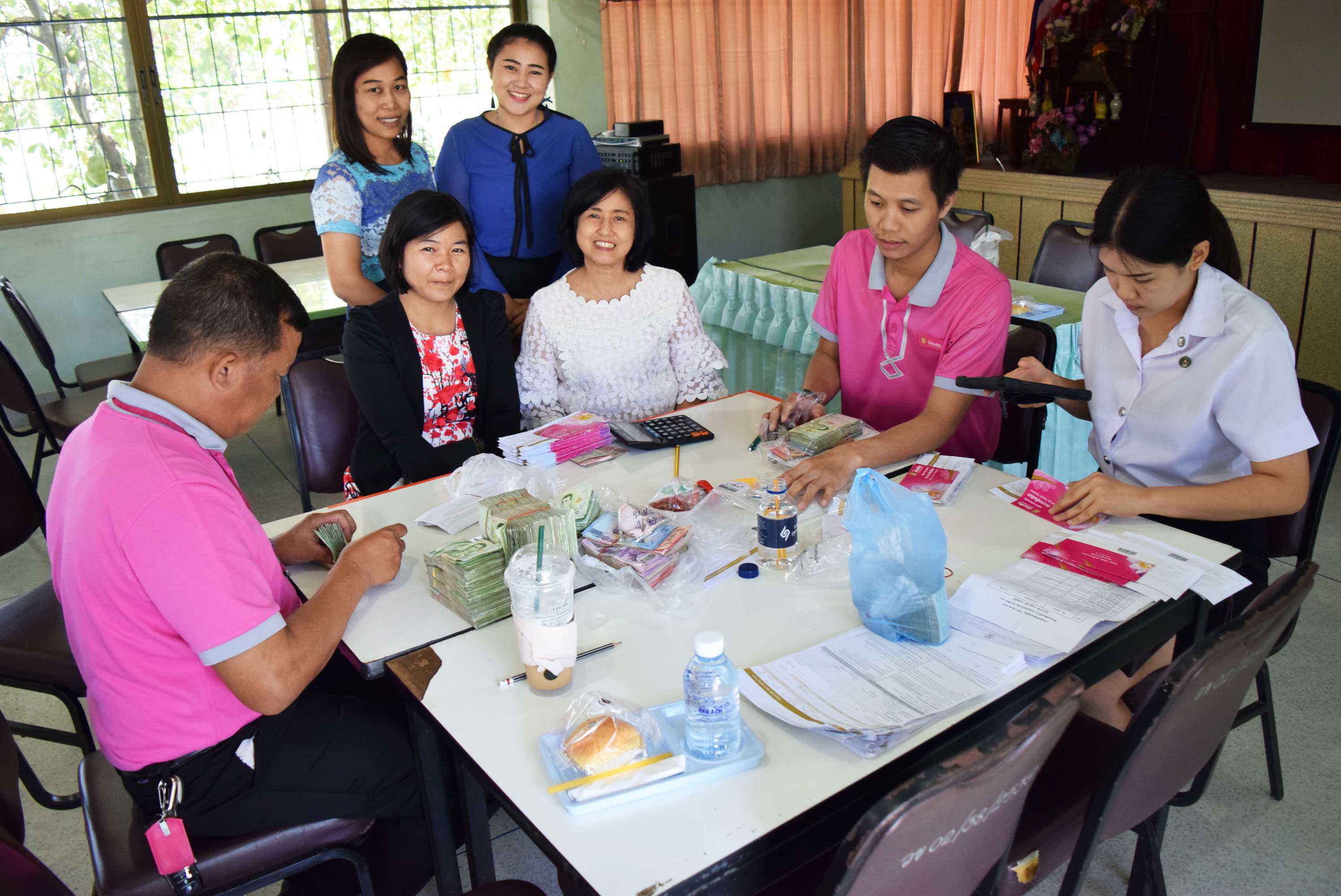 6 มี.ค.2562 จนท.จากธนาคารออมสิน สาขากำแพงแสน เข้ามาบริการรับฝากเงิน